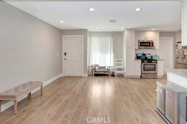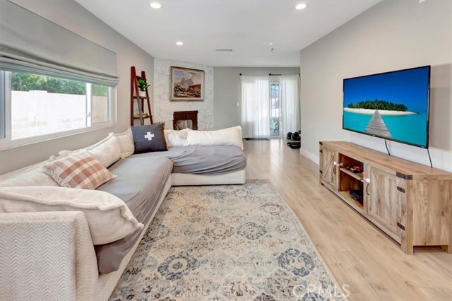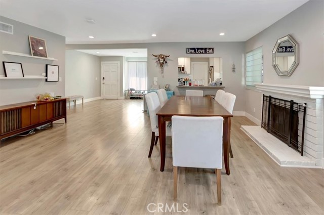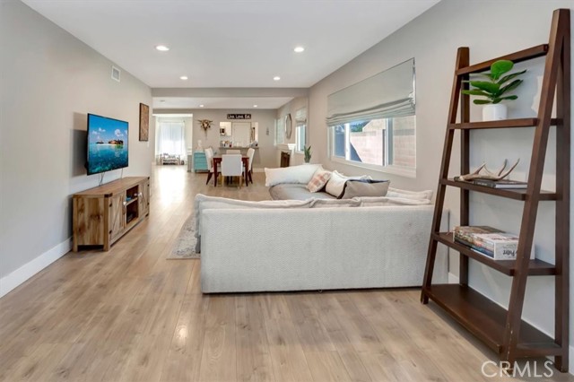 Beautifully updated single-level home on a quiet interior street in Lake Forest, offering approximately 1,700 sq ft with 4 bedrooms and 3 bathrooms. Step inside to a bright, open layout featuring wide-plank flooring, recessed lighting, and a seamless flow between the living, dining, and kitchen areas. The remodeled kitchen is the heart of the home, showcasing white shaker cabinetry, quartz countertops, stainless steel appliances, and a functional layout ideal for both everyday living and entertaining. The spacious floor plan includes multiple living areas and well-proportioned bedrooms, including a flexible fourth bedroom that works perfectly as a home office, guest room, or bonus space. Bathrooms have been tastefully updated with clean, modern finishes. The backyard is a standout feature, offering a large, usable space with a covered patio, expansive turf area, and multiple seating zones; perfect for entertaining, relaxing, or enjoying Southern California indoor-outdoor living year-round. A long driveway provides additional parking and flexibility. Located in a well-established neighborhood with no HOA, close to parks, schools, shopping, and dining. This is a rare opportunity to own a move-in ready single-story home with both style and space.