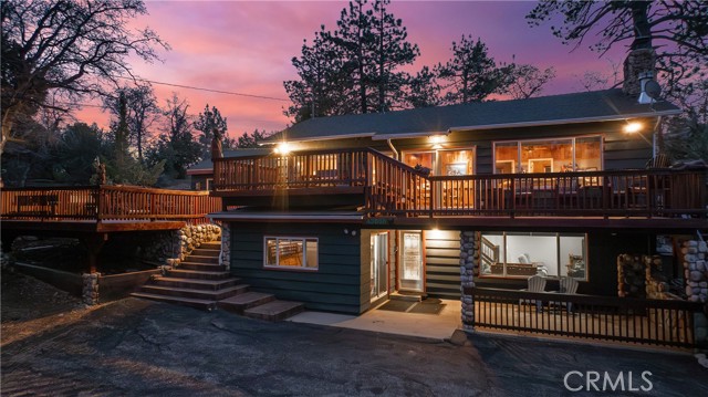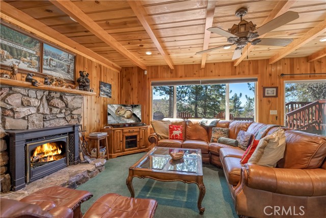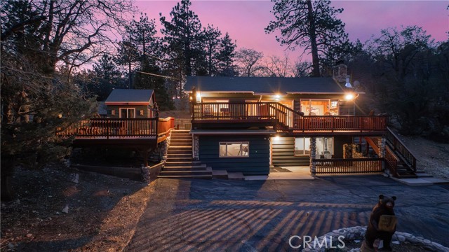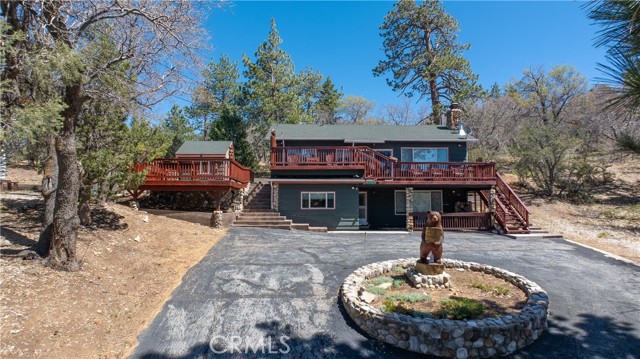 Escape to your private mountain retreat in Upper Moonridge, backing to acres of national forest with stunning ski slope views of Bear Mountain from nearly every room. This 4-bedroom, 3-bath home features vaulted ceilings, a striking river rock fireplace, and expansive windows that bring the outdoors in. The newly refinished deck captures breathtaking views, while multiple decks and patios create ideal spaces for outdoor living. Additional highlights include a hot tub-ready balcony and separate workshop. Just minutes to Bear Mountain, Big Bear Lake, and year-round recreation—this is the perfect blend of serenity and convenience.
