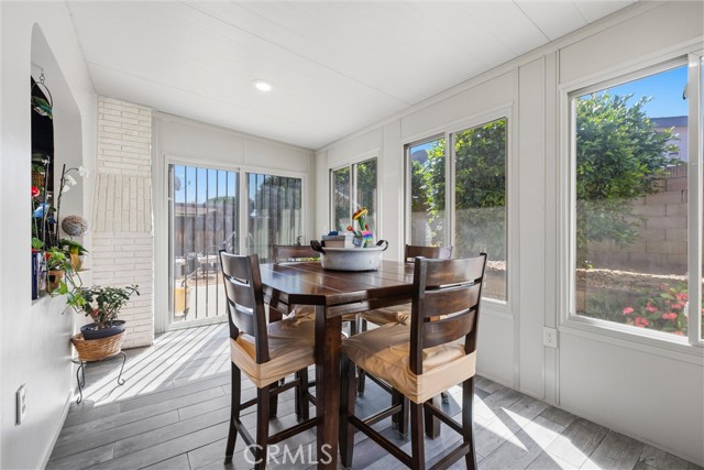 Welcome to this beautifully maintained home in a sought-after 55+ community — where thoughtful design, natural light, and outdoor living come together seamlessly. With two spacious bedrooms and two full bathrooms, the layout is both functional and inviting. The private primary suite offers a quiet retreat with its own dedicated bathroom, giving you the comfort and independence you deserve. The true heart of this home is its open, light-filled living space — where the sunroom flows naturally into the living and kitchen areas, creating an expansive, airy feel that's rare at this price point. Whether you're hosting friends or enjoying a quiet morning, this connected space makes every occasion feel effortless. The well-appointed kitchen features generous cabinetry and plenty of counter space, while the sun-drenched dining area sets the perfect scene for both everyday meals and memorable gatherings. Step outside to front and back patios surrounded by mature fruit trees — a peaceful, private setting ideal for gardening, entertaining, or simply unwinding at the end of the day. The home also features solar panels, helping keep energy costs low and making everyday living that much more efficient. And when you're ready to socialize, the community's sparkling pool and jacuzzi are just steps away — perfect for staying active, relaxing, and connecting with neighbors in a warm, welcoming environment. Conveniently located minutes from shopping, dining, freeway access, and everyday essentials, this home delivers the lifestyle you've been looking for.