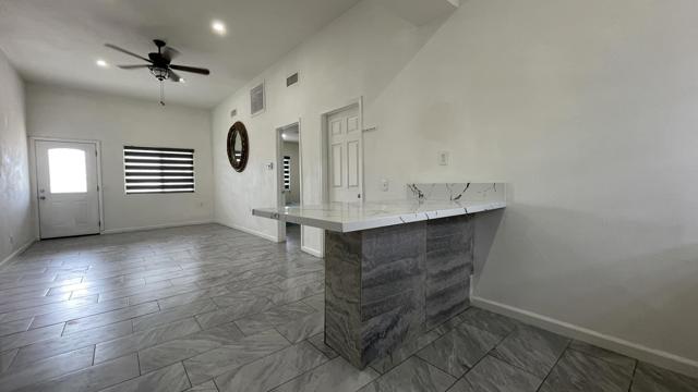 Great opportunity to own to this beautiful upgraded single-family home in the Salton City Beach area. This single-family home was built in 1967, the property features 3 bedroom and 1 bath, sitting on a large 6154 sq. ft. lot with much potential. There is a detached 2-car garage on the back area of the house. This home offers great curb appeal, as it features a beautifully front covered patio with a large driveway. As you walk in, you are welcomed to a family room with an open floor plan that brims with natural lighting. The kitchen offers new quartz counter tops, backsplash, newer kitchen cabinetry and tile flooring, there is a remodeled bathroom with a large walkin shower area, inside laundry, newer windows, this house is perfect for first time home buyer, is a must see !! Buyer to verify sq. ft. and permits.