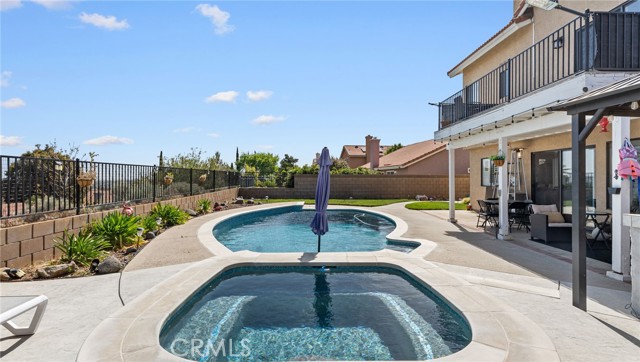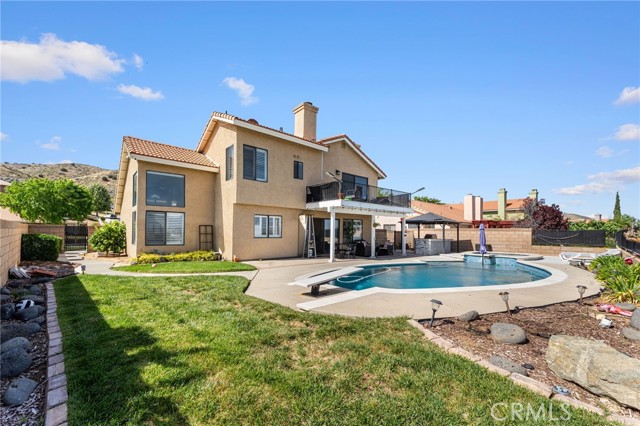 BEAUTIFUL PROPERTY WITH AMAZING VIEWS, POOL, AND SPA. LOCATED IN THE EXCLUSIVE WEST PALMDALE - RANCHO VISTA AREA. Create your own memories living in a relax environment. This true gemstone boasts 5 bedrooms, 3 baths sitting on a 7,540 sqft lot with gorgeous valley views. Property features a great concept of high ceilings and open spaces combined with a well distributed floorplan. A bedroom and a full bathroom located downstairs for convenience. The front entrance welcomes you into the renovated living room and dining area with an astounding chandelier which gives this property an amazing character. Stunning kitchen with remodeled countertops, cabinets, and a well-designed island for additional counter space. Kitchen window facing the backyard for convenience (specially for families with kids). Lots of natural light flowing throughout the house. Recessed lighting controlled with Alexa system and plenty of window shutters can create a dimmer environment as well. Adjacent to the kitchen you will find an inviting family room with fireplace which helps keep the family and company closer. Laundry room with plenty of space leading to the 3-car attached garage. Astonishing staircase leads to the second floor where you will find the remaining bathrooms and bedrooms which include the following: A great size master bedroom with its own private bath, fireplace, and a balcony with beautiful views overlooking the backyard and the valley. A good size bedroom also with high ceilings and plenty of closet space. And two regular size bedrooms to make it a total of 5 bedrooms. (NOTE: Title shows 4 bedrooms, so we recommend buyers to perform their own due diligence or investigations regarding size and room count). Additional overall features: Upgraded AC/Heating and electrical systems, new flooring, new paint, new roof (2024), water softener and purifier systems installed, as well as an electric vehicle charging station. Spectacular back yard with plenty of space, valley views, pool, spa, and a patio with a built-in BBQ area (including sink and fridge) to enjoy with family and friends. Alexa smart system efficiently controls the lights, window blinds, garage door, security cameras, pool, spa, ceiling fans, plugs, and more... Property located near schools, parks, a golf club, an amphitheater, supermarkets, stores, restaurants, and lots of green areas to enjoy. Don’t miss this great opportunity to own a gorgeous property in a fantastic location!!
