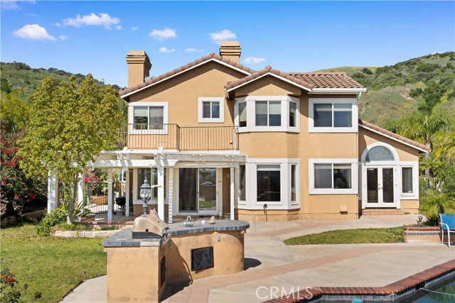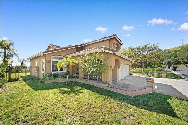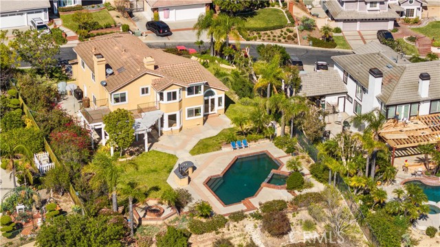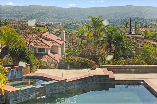 Perched on a quiet cul-de-sac in Yorba Linda, this exceptional 5-bedroom single-family residence offers privacy, expansive grounds, and breathtaking panoramic views of rolling hills, glowing sunsets, and sparkling city lights. Situated on an impressive 23,000 sq. ft. lot, this hilltop property provides a rare opportunity to enjoy serene hillside living with incredible space and stunning scenery. A welcoming foyer entry leads into a dramatic living room featuring soaring ceilings and oversized windows that flood the home with natural light while framing the spectacular views. The elegant formal dining room comfortably accommodates a large dining table and offers direct access to the backyard—perfect for enjoying meals while taking in the incredible sunset and city-light vistas. The kitchen features a center island, wood cabinetry, and granite countertops, and opens to the inviting family room with direct backyard access, creating a seamless indoor-outdoor flow ideal for both everyday living and entertaining. A desirable main-level bedroom provides flexible space for guests, extended family, or a home office. A graceful curved staircase leads to the second level where four additional bedrooms offer comfortable living space, including a room ideal for a study or office. The spacious primary suite serves as a private retreat and features an ensuite bathroom with separate soaking tub and walk-in shower, along with access to a large private balcony—the perfect place to relax and enjoy sweeping hill, sunset, and city-light views. The backyard is the true highlight of the property, offering a private outdoor oasis with a PebbleTec pool and spa, built-in BBQ, expansive patio areas, and a generous lawn. With its elevated hilltop setting and massive lot size, the backyard captures spectacular sunset and city-light views, creating a stunning setting for relaxation or entertaining. Additional features include a private driveway, three-car garage, and nearby access to the scenic S Ridge Trail, perfect for hiking and enjoying the natural beauty of Yorba Linda’s hillside environment.