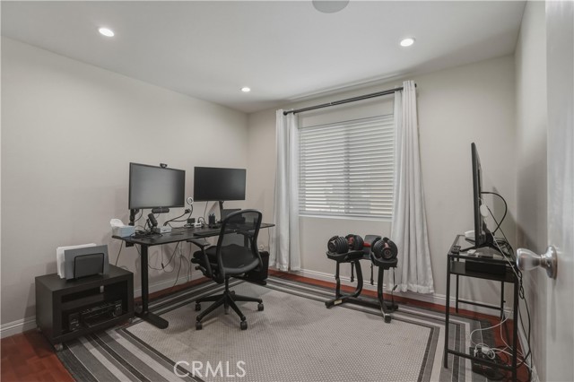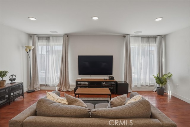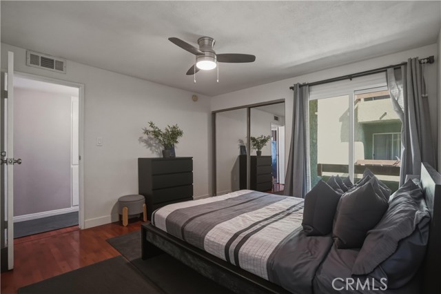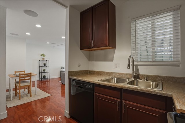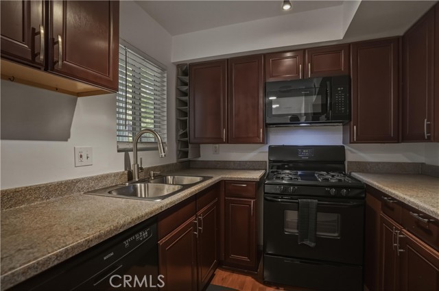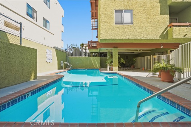 Beautiful 2-bedroom, 2-bath condo located in a gated community. This light-filled first-floor end unit offers an open floor plan with newer windows (2022), recessed lighting, built-in living room speakers, and laminate flooring throughout. The kitchen is equipped with a dishwasher and built-in microwave, making it both functional and convenient. The primary suite features two closets, an en-suite bathroom, and a private balcony overlooking the pool. Additional highlights include secured building access, two covered tandem parking spaces behind a security gate, community laundry, and a beautifully maintained complex with a sparkling pool. Only 28 units in the community and conveniently located near shopping, dining, parks, and schools, this move-in ready condo offers an exceptional opportunity in a highly desirable location.