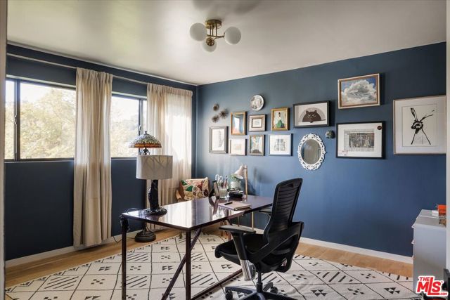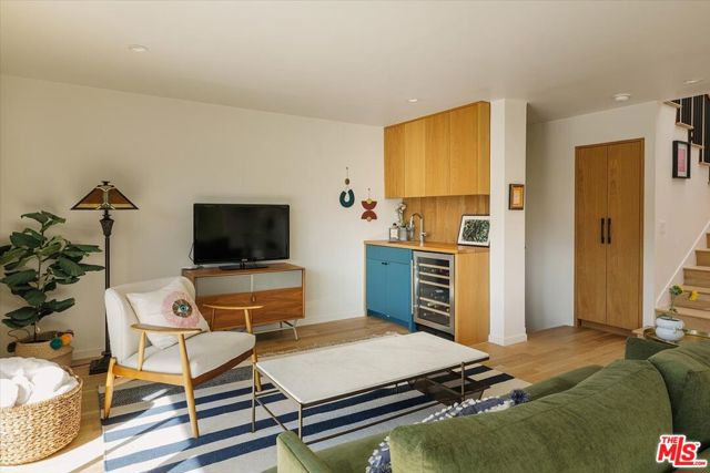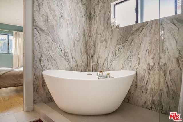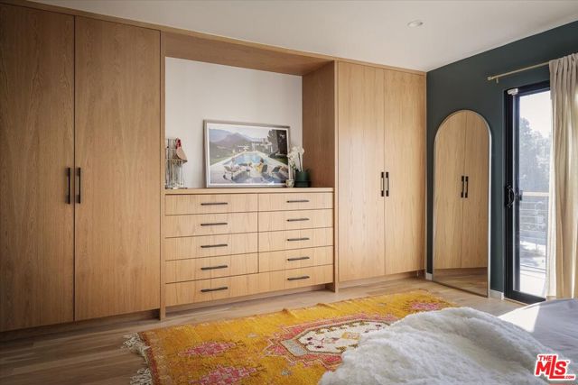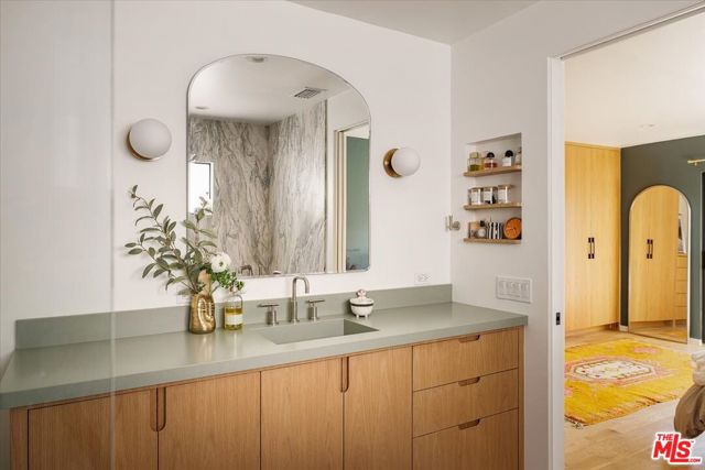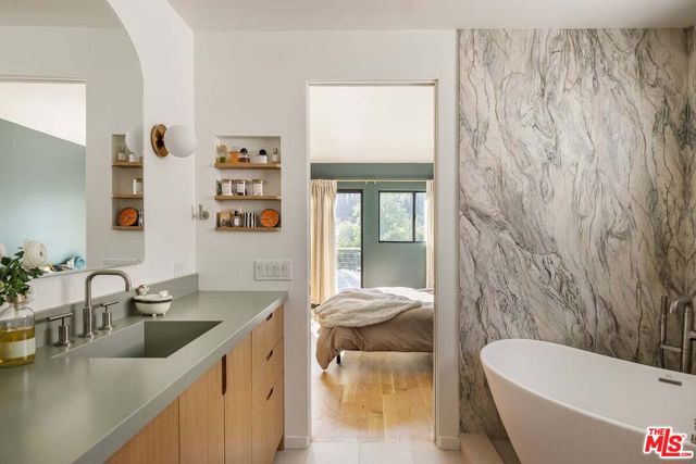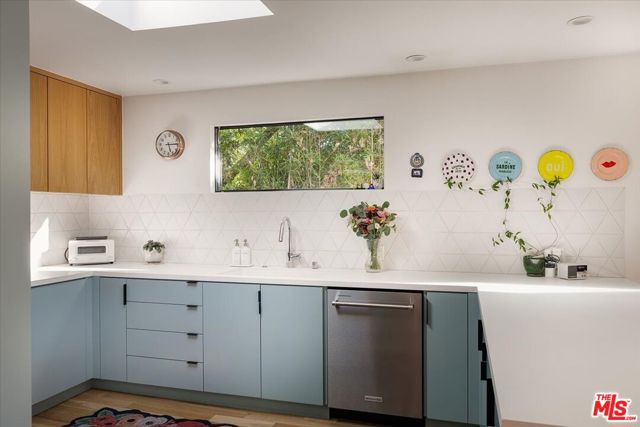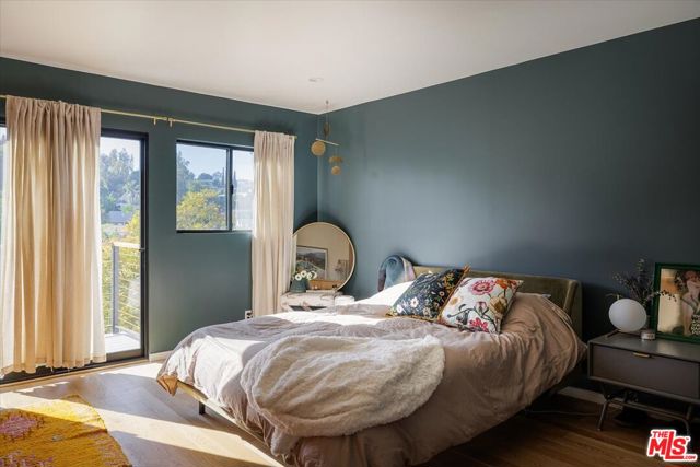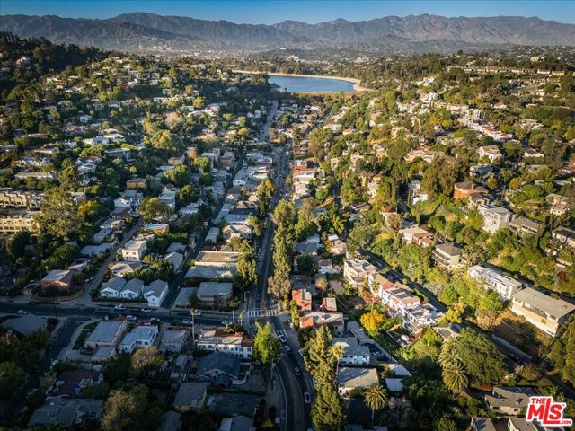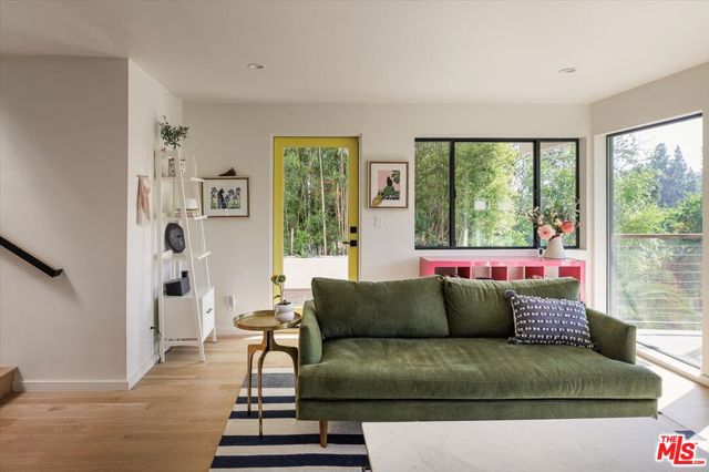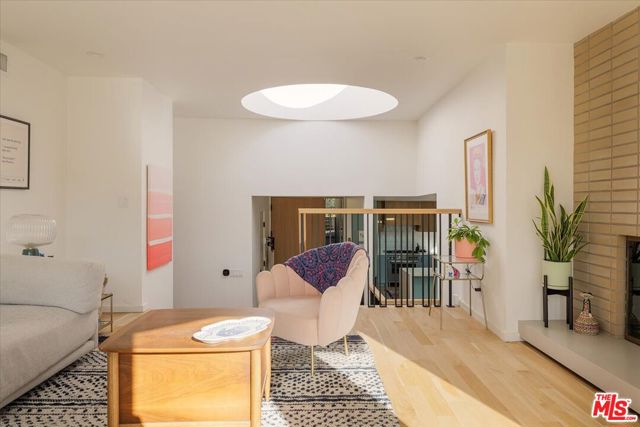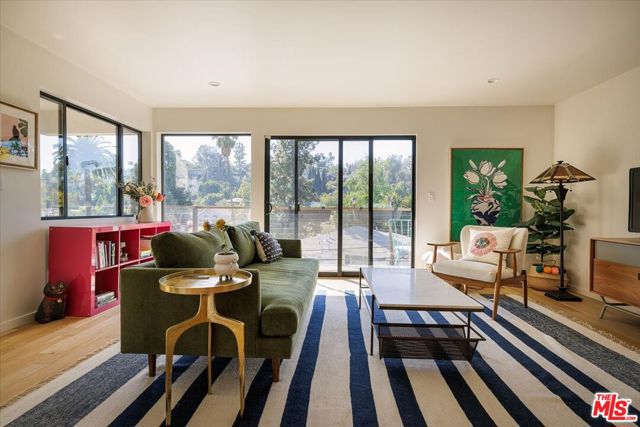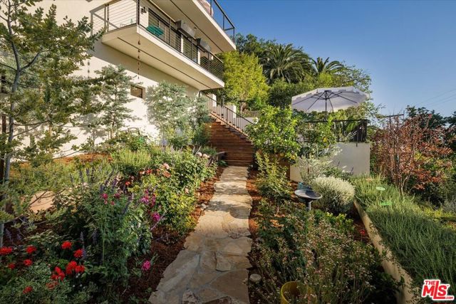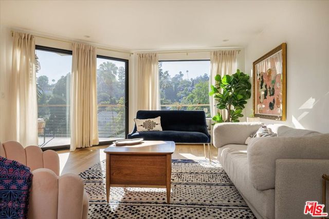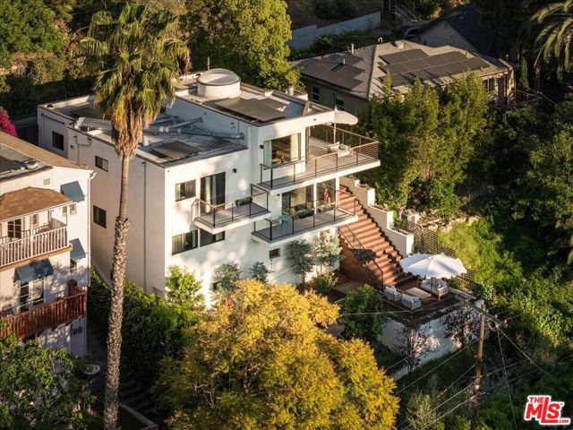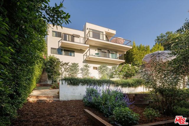 A modernist Silver Lake sanctuary, fully transformed with exquisite design, light, and thoughtful details at every turn. Anchored by a luminous, dome-like central skylight, the home is filled with a warm, inviting glow. The kitchen is a masterpiece of style and function, with professional-grade appliances, abundant storage, and clean, modern finishes. Living and family rooms are captivated by a fireplace, a sleek wet bar, and multiple expansive balconies that frame stunning hillside and neighborhood views. A light-filled powder room is perfectly positioned to serve the main floor. The primary suite is a serene retreat, featuring a spa-inspired bath with a HydroSystem soaking tub, custom Silestone countertop and sink, Magnifica bookmatched porcelain slabs, Kohler fixtures and custom white oak cabinetry. Two gracious lower bedrooms are accompanied by a recently renovated lower-level guest bath, continuing the refined aesthetic with a Silestone countertop + sink and shelving, and Kohler fixtures. There are two hidden private bonus areas beneath the home, each with its own separate entrance and generous storage space ideal for use as a home office, garden tool storage, or even a home gym. Step outside to a beautifully terraced and newly-landscaped private garden, filled with roses, butterfly bushes, olive and plum trees, a lemon tree, and private outdoor spaces, including an expansive deck ideal for entertaining or quiet relaxation. Additional highlights include a direct-access 2-car garage with washer + dryer. Updates include fully paid off solar panels, Tesla EV Charger, new gutter system, foundation retrofit and waterproofing system on the balconies and the roof. Just minutes from the Silver Lake Reservoir, dog park, and the area's best restaurants, cafes and boutiques, this home is a rare modern retreat offering the ultimate in design, comfort, and Los Angeles lifestyle.