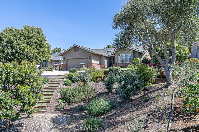 Elevated Living in Beautiful Nipomo – Where Climate Meets Comfort Praised for its incredible weather—including recognition from Jeopardy and the The Wall Street Journal—Nipomo offers a lifestyle that’s hard to beat, and this stunning hilltop home lets you enjoy it to the fullest. Situated on a spacious ¼-acre cul-de-sac lot, this 3-bedroom, 2-bathroom residence delivers a unique blend of character, functionality, and style. On a raised foundation with just two steps to enter and no interior steps, the home is designed for easy, single-level living.The house itself features a warm, neutral exterior with subtle brick accents and a well-maintained two-car garage. Large front windows allow for abundant natural light while offering views of the greenery! To the right, a cozy seating area tucked beneath a mature tree provides the perfect spot to relax and enjoy the serene surroundings and views of the hills! The property feels private, welcoming, and well cared for—ideal for someone who appreciates outdoor space, natural beauty, and a home with curb appeal that stands out. Inside is inviting, featuring soaring vaulted ceilings that create an open, airy feel, enhanced by dramatic paint tones that add depth and sophistication. Architectural soffits and defined wall lines bring visual interest and dimension, while rich wood flooring grounds the room with warmth. Natural light streams through well-placed windows, highlighting the clean lines and thoughtful design. A cozy fireplace anchors the space, seamlessly connecting to the adjacent kitchen for an ideal flow of everyday living and entertaining. The updated kitchen is both stylish and practical, featuring: Quartz countertops,Two-tone cabinetry,Butcher block island,Wine rack,Large pantry,All overlooking a covered backyard patio, perfect for entertaining or relaxing year-round. The spacious primary suite offers a private retreat with: Dual sink vanity, Refreshed shower, Skylight for natural light,,Closet organizers and custom shelving. Additional highlights include:Newer wood laminate flooring,Dual-sided decorative gas fireplace. A two-car garage completes the property, Two distinct outdoor spaces: an upper yard and a lower garden area, ideal for entertaining, gardening, or enjoying the views and the home’s elevated position offers a sense of privacy. If you’re looking for a home with personality, light, and lifestyle—this is one you don’t want to miss. ________________________________________