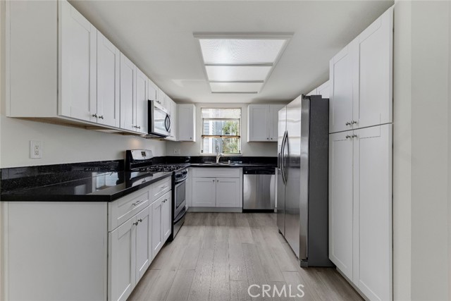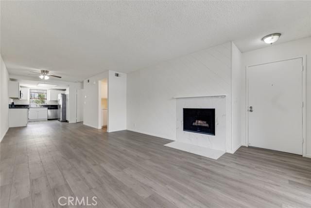 Freshly updated and move-in ready, this 2-bedroom, 2-bath condo in the desirable American Beauty community offers 970 square feet of bright, comfortable living with an open layout that feels both spacious and functional. Newly painted with new flooring and new appliances, the home opens to a generous main living area with the living room at one end, highlighted by a new fireplace and sliding glass doors that lead to a private balcony, an inviting spot for morning coffee or unwinding in the evening. At the opposite end, the kitchen brings a crisp black-and-white aesthetic with sleek new appliances, while the space in between easily accommodates a dining area to create an appealing great-room environment for everyday living and entertaining. The primary suite is generously sized and features a walk-in closet and private en-suite 3/4 bath, while the secondary bedroom is well-proportioned and served by a full hall bath. Additional conveniences include stackable laundry hookups in a dedicated closet and a private detached 2-car tandem garage. Set within a resort-style community known for its expansive greenbelts and well-kept grounds, residents enjoy access to multiple pools, spas, tennis courts, and a clubhouse, with HOA dues covering water, trash, exterior maintenance, and insurance. Ideally located near restaurants, shopping centers, and award-winning schools, this is an excellent opportunity for an owner-occupant or investor seeking value, amenities, and a strong Santa Clarita location.