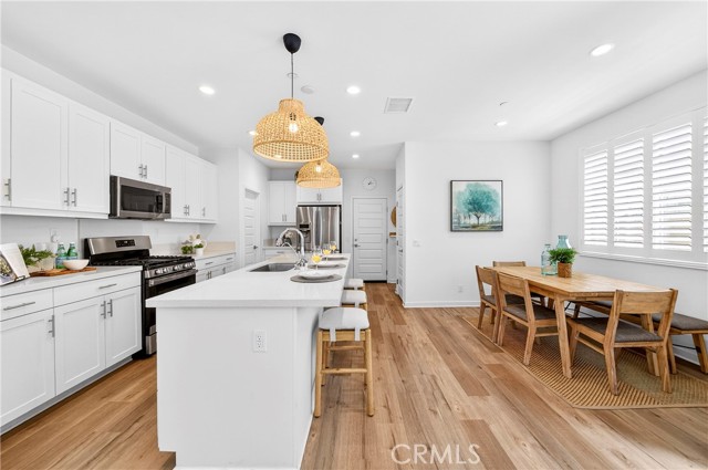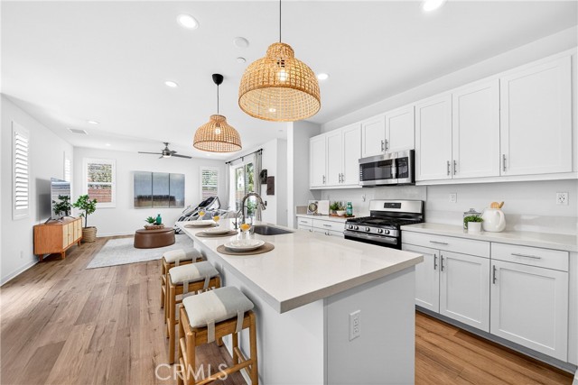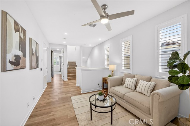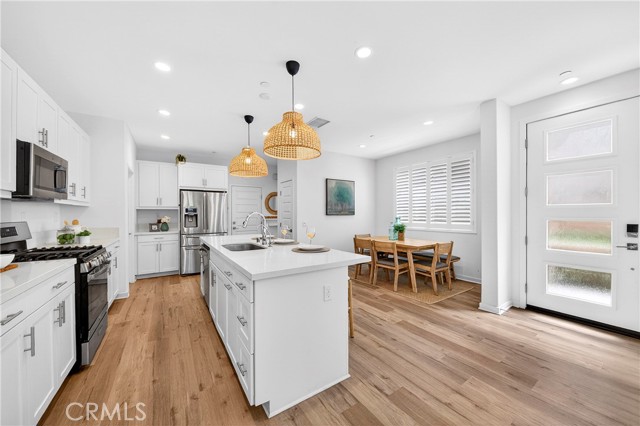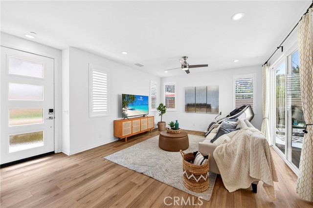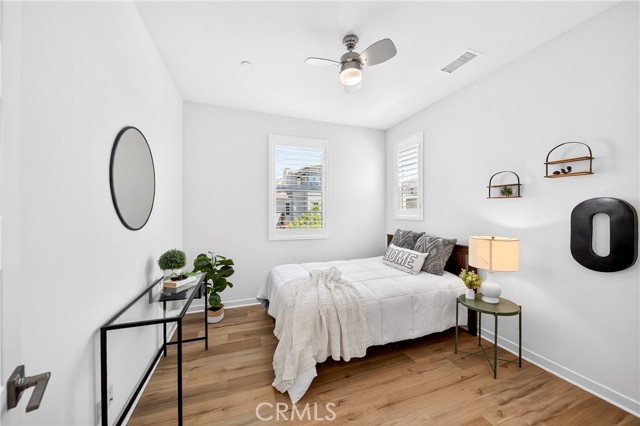 Welcome to the crown jewel of Canvas. A rare, DETACHED single-family style home that defines modern luxury with fully PAID OFF SOLAR and incredibly LOW HOA dues, featuring a newly installed whole-house water softener system and an EV charging-ready garage, meticulously upgraded with premium wood flooring throughout every level and a thoughtfully designed layout with a sun-drenched open-concept first floor where a gourmet kitchen and living area flow seamlessly, three spacious bedrooms perfectly secluded on the second story for ultimate privacy, and a spectacular third-floor entertainment sanctuary with soaring ceilings and direct balcony access to enjoy the nightly Disneyland Fireworks, all while stepping out into your own professionally landscaped backyard oasis complete with a golf putting green and custom fire pit, perfectly positioned on a premium lot just steps from the resort-style pool and the very best of Anaheim’s dining and entertainment.