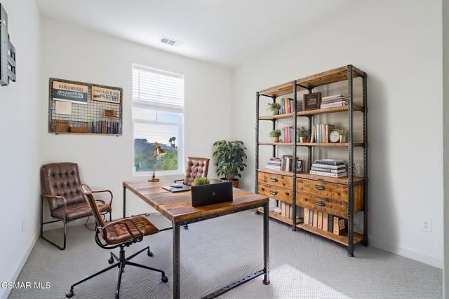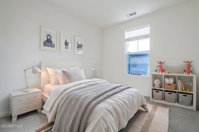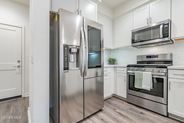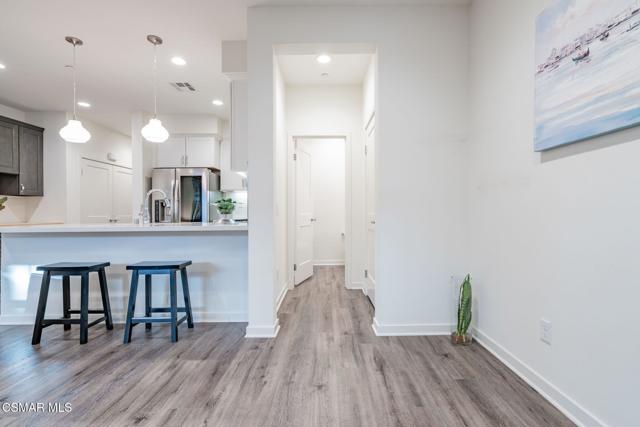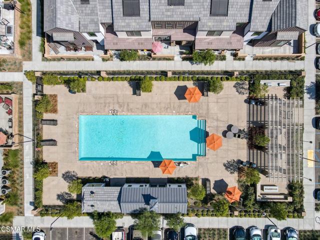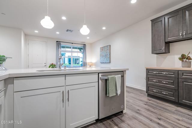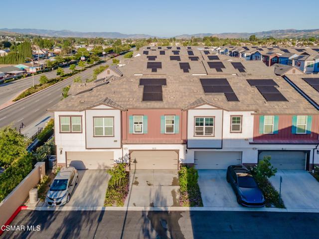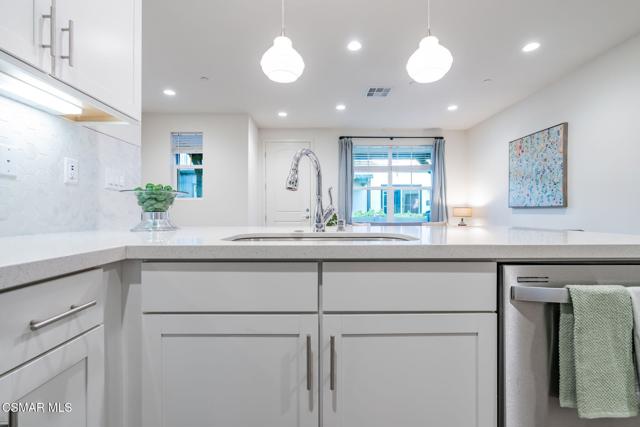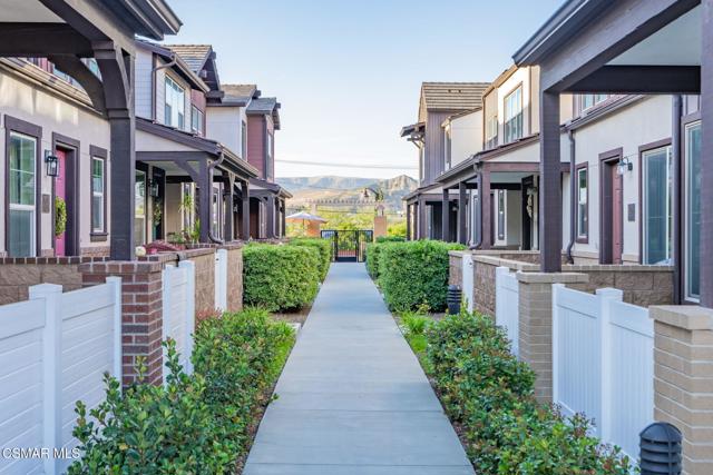 Welcome to this stunning townhome with a rare spacious (two car) driveway featuring 3 bedrooms, 2.5 bathrooms, and 1,393 Sq ft of thoughtfully designed living space. Ideally located in the heart of Simi Valley, this home blends modern style with everyday comfort. The inviting entry opens to a light-filled living area with 9-foot ceilings, recessed lighting, and an open-concept layout. The chef's kitchen is the centerpiece featuring quartz countertops, upgraded stainless steel appliances, a spacious pantry, a large peninsula with breakfast bar, and a beautiful built-in for added storage and style. The adjacent dining and family rooms are bright and welcoming, perfect for entertaining. Upstairs, the private primary suite includes a walk-in closet, dual vanities, and an oversized shower. Two additional bedrooms, a full bath, and a dedicated laundry area complete the upper level. Enjoy the rare bonus of a full driveway plus direct access to a 2 car garage, a unique feature in this community. Additional features include dual pane windows, ceiling fans, central AC/heat, whole house water filtration, and an enclosed front patio. Community amenities include a pool, spa, fire pit, bocce ball court, picnic area, rose garden, dog park, and kids' play area.