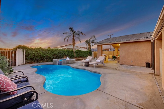 Fully Furnish Home with Resort Living Style centrally located in Desert Hot Springs. Only 10 minutes away from Downtown Palm Springs. Currently set up Air B&B "Short Term" Rental with good income. Beautiful upgraded home with Spanish flooring. Game rooms. Owned Green Solar Energy (24 Panels). Cozy and comfort modern designs of Living Room, Dining Room, Kitchen, Bedrooms & Bathrooms. Private back yard with Salt Water Pool, Spas & BBQ Area. Updated automation systems with Smart Home features offer the best Modern of Living with the comfort of your mobile phone. Plenty of parking spaces and a separate Boat or RV parking. Hurry! It won't last.