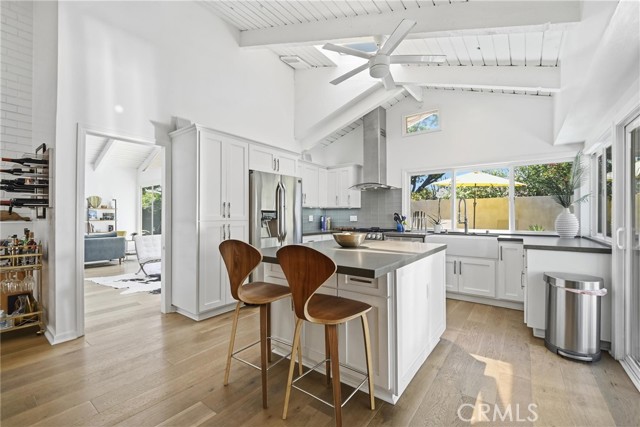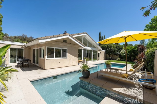 Welcome to one of the most desirable single-story homes in Westlake Village, located in the highly sought-after Village Homes community. Known for its tree-lined streets, walkability, and resort-style amenities, Westlake Village offers a premier Southern California lifestyle with easy access to top dining, shopping, and outdoor recreation. Situated on a quiet and ultra-private double cul-de-sac, this mid-century inspired pool home features over 2,000 square feet of living space, 4 bedrooms, and an open-concept floor plan designed for both everyday living and entertaining. Inside, you’ll find soaring wood-beamed ceilings, clerestory windows, and abundant natural light that enhance the home’s architectural character. Upgrades include wide plank wood flooring, a floor-to-ceiling fireplace, skylights, and a custom built-in coffee and beverage bar, creating a modern yet warm aesthetic. The remodeled kitchen is equipped with stainless steel appliances, a designer hood, leathered concrete countertops, glass tile backsplash, and a farmhouse sink overlooking the private backyard oasis. Step outside to enjoy a sparkling pool, patio areas, and a peaceful setting ideal for entertaining or relaxing. The primary suite retreat offers direct backyard access, a walk-in closet, and a spa-like bathroom, providing the perfect blend of comfort and privacy. Additional features include a 2-car garage with direct access and ample storage. Residents of Village Homes enjoy access to community amenities including a pool, clubhouse, and tennis courts, along with nearby parks, hiking trails, and top-rated schools. Located just minutes from The Promenade at Westlake, Westlake Lake, and popular local favorites like Nonna, Crawford’s Social, Gelson’s, and Vons, this home delivers the best of Westlake Village real estate. A rare opportunity to own a single-story pool home in one of Westlake Village’s most desirable neighborhoods.