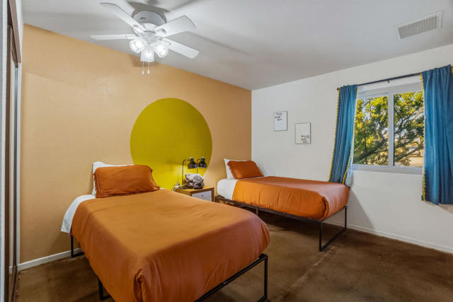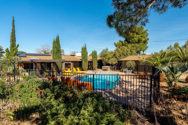 Step into a one-of-a-kind retro retreat where distinctive design meets modern comfort. The expansive corner lot--nearly half an acre--offers a circular driveway, full privacy, and generous outdoor space, creating a setting perfect for relaxed living and effortless entertaining. An in-ground pool paired with two spas invites year-round enjoyment, while the covered patio with outdoor kitchen and pavilion sets the stage for memorable evenings under the stars.Inside, three fireplaces warm the kitchen, living, and family rooms, adding character and ambiance throughout. A wet bar enhances hosting, while the detached two-car garage, currently styled as a game room, provides flexible space for recreation or hobbies.The primary suite delivers a private escape with a Roman tub framed by a window box and an enclosed patio featuring its own in-ground spa--offering a spa-like experience at home. A 36-panel solar system with Tesla PowerWalls brings energy efficiency and peace of mind.Designed for versatility, this property suits a primary residence, vacation getaway, or income-producing opportunity, blending lifestyle, comfort, and long-term value. Priced to sell, this unique home will go quickly. Schedule your private showing today!