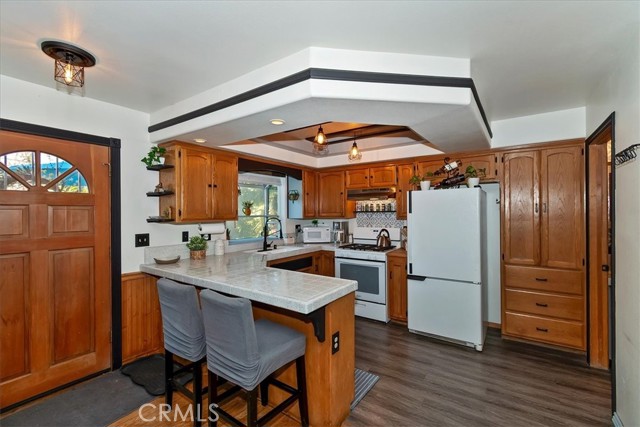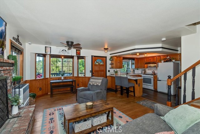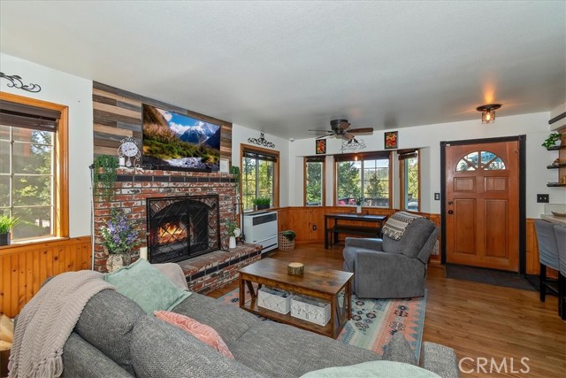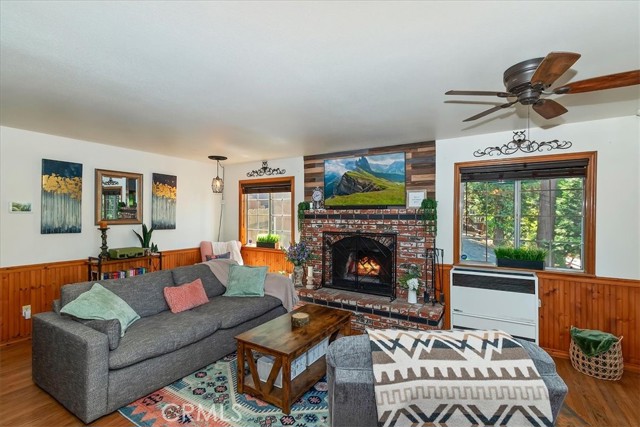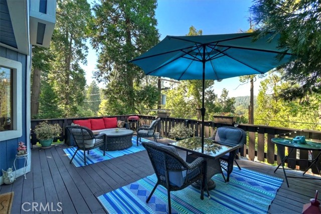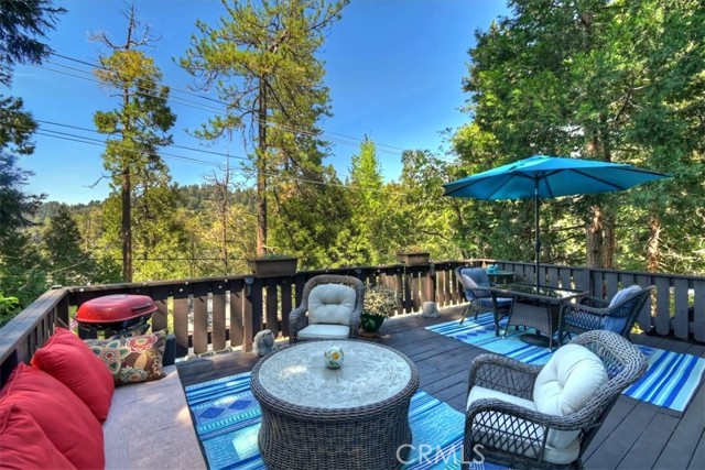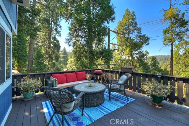 Your Crestline Mountain Escape! Turnkey, Walkable, and Ready to Enjoy. Are you dreaming of a mountain getaway where life feels a little slower, mornings are quieter, and everything you need is just within reach? This is it. Located in the heart of Crestline, this home is just a short walk to charming shops, cafés, and dining while also offering a commuter-friendly location on one of the first plowed roads in winter, along with an oversized concrete parking area that comfortably fits 2–3 vehicles, making year-round access easy and stress-free. Step inside and you’ll immediately feel at home. The main living space is warm and inviting, centered around a classic brick fireplace and filled with natural light. Large windows bring the outdoors in, while the open flow into the kitchen makes everyday living and entertaining feel effortless. The kitchen offers generous counter space, ample cabinetry, and a breakfast bar perfect for slow mornings or casual gatherings. Just off the living area, a cozy window-lined nook creates the perfect spot for morning coffee, a quiet workspace, or simply taking in the peaceful surroundings. Upstairs, the primary bedroom becomes a true retreat, featuring a charming reading nook overlooking the trees and surrounding views, an ideal place to unwind and reset. Two additional bedrooms and a beautifully updated bathroom with a walk-in shower provide comfortable space for guests or family, while the staircase itself adds character and a welcoming transition between levels. Outside, the expansive front deck becomes your second living space perfect for relaxing, entertaining, or even working remotely in the fresh mountain air. In the back, you’ll find a fenced yard and additional deck space, offering a rare and ideal setup for kids to play, pets to roam freely, or simply enjoying a more private outdoor retreat. Additional features include central heating for year-round comfort, convenient indoor laundry, and an unfinished basement with approximately 8-foot clearance and existing concrete flooring providing valuable extra storage and excellent potential for future use, workshop space, or customization. Just a short drive to Lake Gregory and the brand-new grocery store across from the lake, this home offers both convenience and escape in one. Offered fully furnished for a truly turnkey experience, this is a home where you can simply arrive and start living the mountain dream
