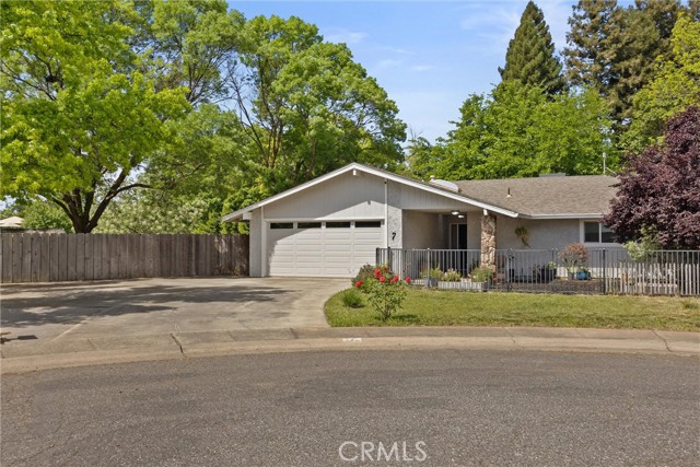 Welcome to 7 Jenny Way — a move-in ready home tucked into a quiet North Chico cul-de-sac with mature trees and a comfortable, established feel. This well-maintained 3-bedroom, 2-bath home offers a functional single-level layout with a spacious living area, highlighted by a custom accent wall that adds warmth and character. The updated kitchen features granite countertops, white cabinetry, stainless steel appliances, and a large basin sink, all flowing seamlessly into the dining area for easy everyday living. Recent improvements include a newly installed combo heating and air system, providing year-round comfort. The primary suite offers generous space along with dual closets for practical storage. Throughout the home, you’ll find updated flooring (LVP in the living areas), neutral paint tones, and a clean, well-cared-for interior that’s ready for its next owner. Outside, the property sits on a nicely sized lot with mature shade trees, a fully fenced yard, and plenty of room to relax, garden, or entertain. The cul-de-sac location offers minimal through traffic while still being conveniently close to shopping, schools, and everyday amenities. Notice: Owner has video/audio recording inside and outside.