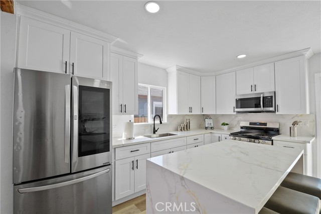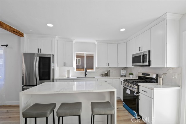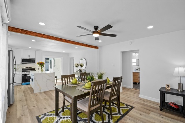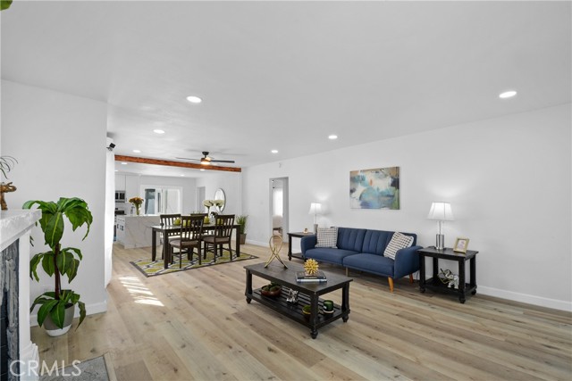 Welcome to this beautifully remodeled 3-bedroom, 2-bathroom home offering 1,310 sq ft of modern living space on a generous 5,400 sq ft lot. From the moment you arrive, you’ll be impressed by the inviting curb appeal, fresh exterior paint, and newly landscaped front yard. Step inside to an open-concept floor plan filled with natural light, featuring new laminated wood flooring throughout and a spacious living area perfect for relaxing or entertaining. The stunning kitchen has been fully upgraded with new cabinetry, quartz countertops, and stainless steel appliances, complemented by a large center island that flows seamlessly into the dining area. Both bathrooms have been tastefully remodeled with contemporary finishes, creating a clean and modern feel. The bedrooms are well-sized, offering comfort and functionality for any lifestyle. Enjoy the expansive backyard, complete with new landscaping and a large patio area—ideal for outdoor gatherings, entertaining, or future possibilities such as adding an ADU. The long driveway provides ample parking and flexibility. This turnkey home is a perfect opportunity for first-time buyers or investors looking for a move-in ready property with style, space, and potential.