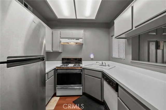 Welcome to this charming and move in ready lower level condo. Offering 1 bedroom, 1 bathroom, and 642 sq ft of comfortable living space, this beautifully maintained home is perfect for first time buyers, downsizers, or investors. Step inside to a freshly painted interior complemented by newer flooring in the bedroom. The spacious living room provides a warm and inviting atmosphere, ideal for relaxing or entertaining. The well appointed kitchen features plenty of cabinetry and counter space, providing both functionality and convenience. The bright and airy bedroom offers plenty of storage with two separate closets, giving you flexibility and organization.A private patio, perfect for outdoor lounging, entertaining, or creating your own personal retreat. This home also features a rare 2 car tandem garage with a dedicated laundry area and additional storage space, an exceptional find for a one bedroom condominium. Enjoy community amenities including a pool and spa, BBQ area along with a prime location near shopping, dining, parks, and easy access to the 118 and 210 freeways.Don’t miss this rare opportunity to own a one bedroom townhome with a 2 car tandemn garage an incredible value in today’s market!