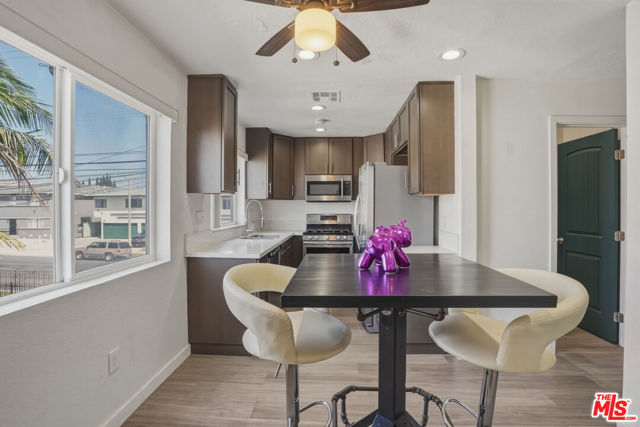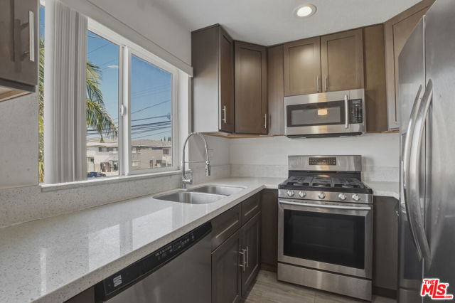 Renovated in 2019, this townhouse-style end-unit combines modern convenience with the ease of low-maintenance living. The main living area is thoughtfully designed to be a versatile space, ideal for relaxing or entertaining. The kitchen boasts stainless steel appliances, sleek quartz countertops, and an adjacent dining area that's ideal for casual meals or special occasions. Upstairs, the bedrooms provide a tranquil retreat and an airy feel with their vaulted ceilings and abundant closet space. One of the bedrooms is further enhanced by a balcony, offering a serene spot to bask in the sunshine or enjoy fresh air. The home is further elevated by features such as in-unit washer and dryer, wide plank laminate flooring, and generously sized linen and pantry closets. Additional amenities include a private two-car garage, a tankless hot water heater for energy efficiency, and low HOA dues that add to the affordability and ease of living. Situated just minutes from major freeways, Silicon Beach, and SOFi Stadium, this residence offers an unparalleled combination of prime location and effortless luxury.