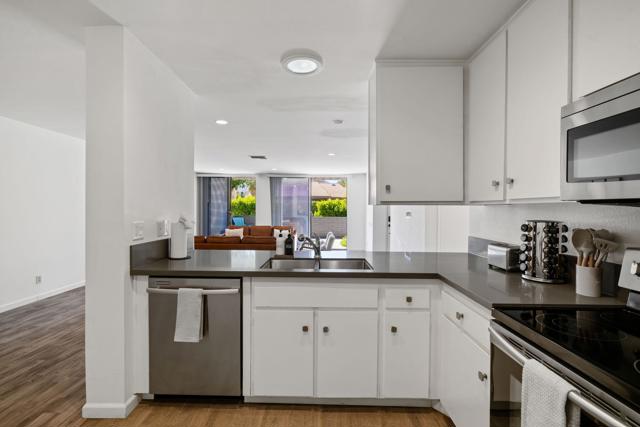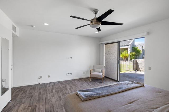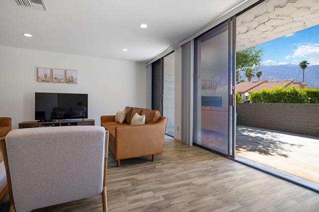 Welcome to your private desert retreat in the highly desirable Palm Springs Country Club! This beautifully upgraded 2-bedroom, 2-bath condo offers the perfect blend of comfort, style and effortless Palm Springs living.Step inside to a light-filled, open-concept layout featuring new vinyl flooring and sleek quartz countertops, creating a clean, modern aesthetic throughout. The spacious living area flows seamlessly to a large private patio--ideal for morning coffee, evening cocktails or simply soaking in the serene desert air.Both bedrooms are thoughtfully designed with their own private patios, offering a rare sense of indoor-outdoor living and personal retreat spaces. The primary suite features a large walk-in closet, adding both functionality and comfort. Additional upgrades include a tankless water heater and a convenient laundry closet with new washer and dryer.Surrounded by lush grounds, this community offers multiple pools and spas, all set against breathtaking mountain views while still maintaining a sense of privacy and tranquility. Located just minutes from shopping, dining, and all that vibrant Palm Springs has to offer, this home is perfectly suited as a full-time residence, weekend getaway, or investment opportunity.Experience the best of desert living--stylish, peaceful, and effortlessly inviting.