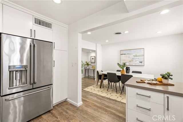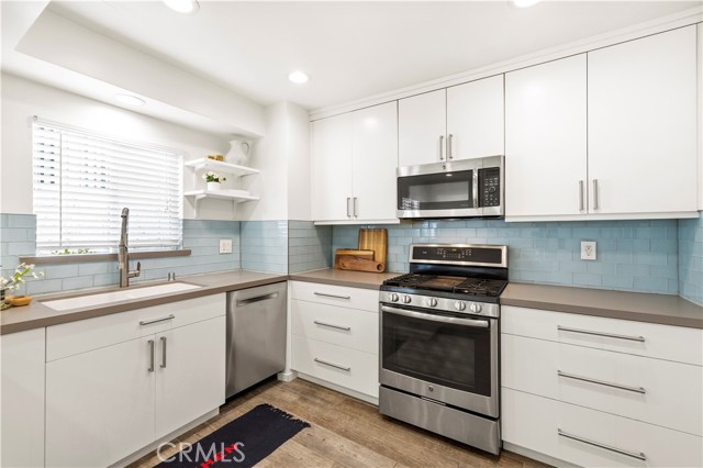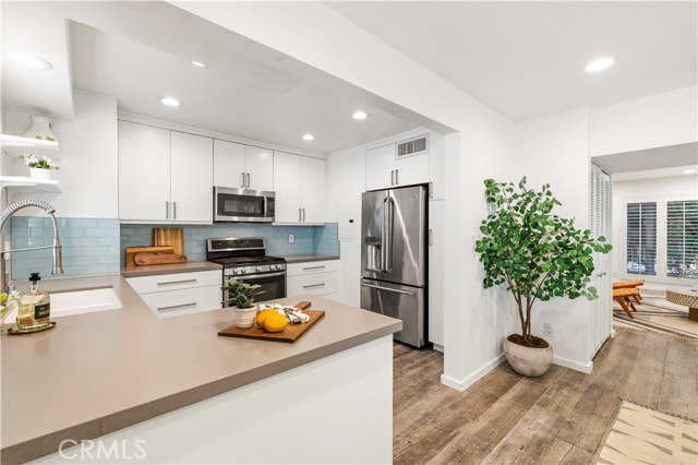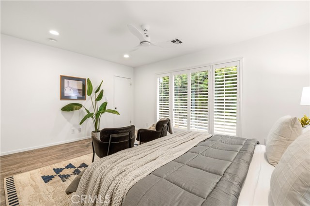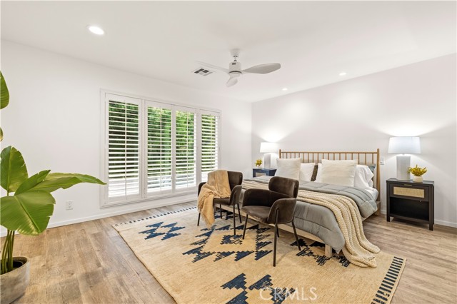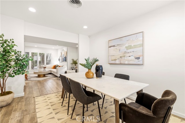Beautifully updated 2 bedroom, 2 bathroom townhome located South of the Boulevard in a desirable Sherman Oaks location. This private residence is set behind gated, lush landscaping and features its own entrance and spacious outdoor patio, ideal for entertaining. The interior offers a bright, open floor plan with new modern tile flooring, fresh paint throughout, plantation shutters, and recessed lighting. The living room includes a wall of windows overlooking the patio, creating seamless indoor and outdoor flow. A flexible space under the stairs can be used for storage or additional functionality. The formal dining area connects to a fully remodeled kitchen complete with quartz countertops, custom cabinetry, glass tile backsplash, and quality appliances including GE stove and microwave/convection oven, and Bosch dishwasher. A built-in laundry closet adds convenience. Upstairs, both bedrooms offer ample space and custom closets, including cedar-lined storage in the primary. The bathroom features a deep slipper tub, separate shower, and recently reglazed finishes. Recent upgrades include newer HVAC system, newer water heater, updated plumbing and Ring alarm system with camera and fire monitoring. Additional features include attic storage and well-maintained systems throughout. The community offers a newly renovated pool. Ideally located near Ventura Boulevard with close proximity to popular dining and shopping including Bacari, Granville, The Sherman Oaks Galleria, and Westfield Fashion Square, along with convenient freeway access.