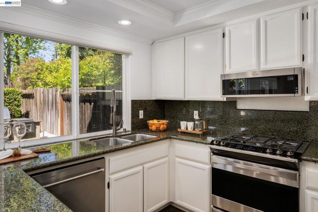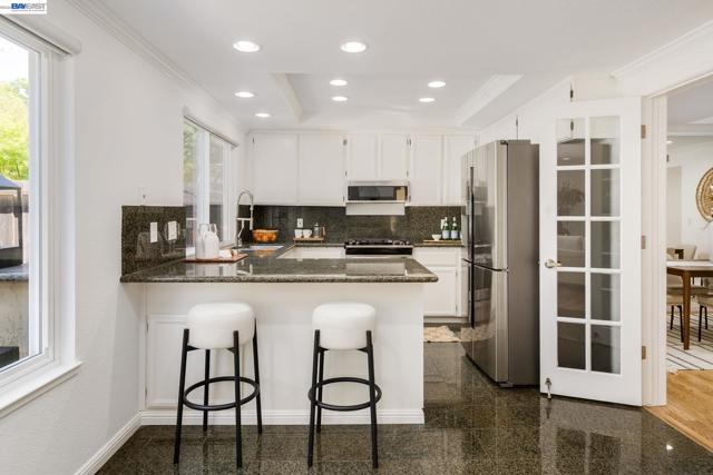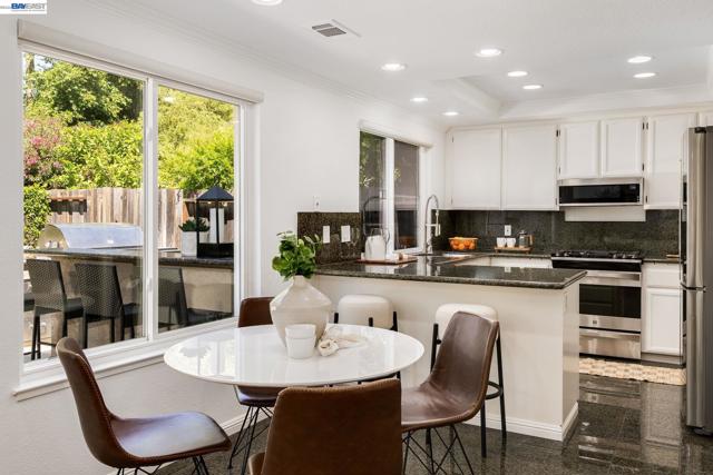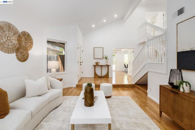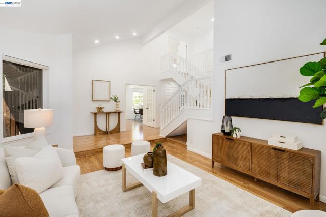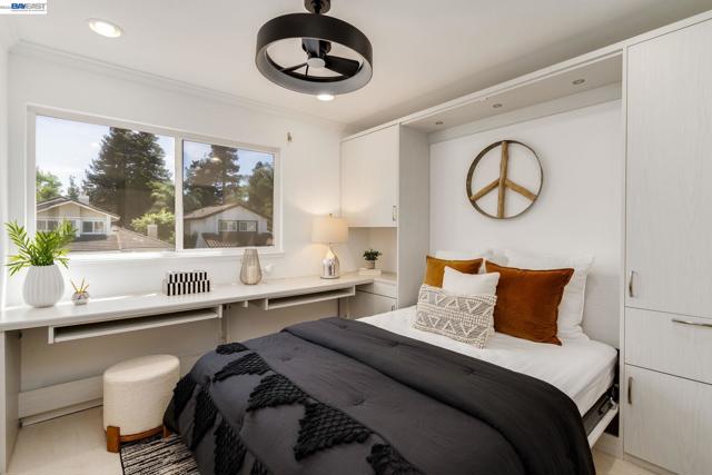 Welcome to your own private retreat. This beautifully updated home blends comfort, style, and functionality—starting with a low-maintenance artificial turf front yard and continuing throughout. Step inside to a bright, open floor plan with vaulted ceilings and abundant natural light. The home features fresh interior paint, brand-new luxury carpet, and an updated A/C system for year-round comfort. The refreshed kitchen includes stainless steel appliances and opens seamlessly to the main living areas—ideal for everyday living and entertaining. Hardwood flooring downstairs adds warmth and contrast. Both bathrooms have been updated with spa-like multi-jet shower systems, creating a true resort-style experience. Secondary bedrooms feature European-style shutters for full light control, and one offers a built-in wall bed—perfect for a home office or flexible space. The backyard is built for entertaining with a spacious patio and built-in barbecue area. Move-in ready and designed to impress.