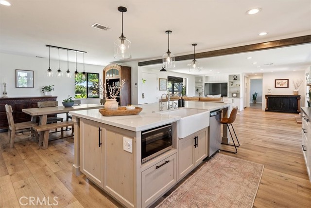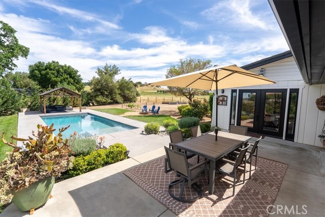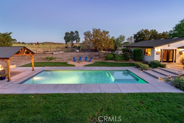 Ever dream of country living with space and privacy, with the convenience of living just minutes from town? This beautifully remodeled 4 bedroom, 2.75 bath, ranch-style home is your dream come true! The 2,900± sq. ft. home sits on 10 level to gently rolling acres and offers an open, bright interior designed for comfortable living and easy entertaining. The living and dining areas connect seamlessly to the ultimate chef’s kitchen featuring custom soft-close cabinetry, gorgeous quartz countertops, stainless steel appliances, and a large walk-in pantry. The living room provides a warm and inviting gathering space around the fireplace. The spacious primary suite includes a walk-in closet, dual vanities, and a separate jetted tub and shower. Step outside to enjoy a refreshing in-ground pool, multiple patios, and an inviting fire pit—perfect for relaxing evenings or hosting guests. The property also features an old historic barn full of character, fenced and irrigated pastures, a 2-stall barn, mature trees, paved driveway, garden area, and plenty of usable land for animals, hobbies, or future improvements. A rare blend of rural charm and modern comfort.