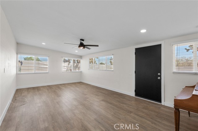 Welcome to 7433 Sage Ave in the heart of Yucca Valley, a charming and well maintained home offering comfort, style, and a highly convenient location. Built in 1965 and set on a generous .39 acre lot, this approximately 1,600 square foot home features 2 bedrooms, 1 bathroom, a 2 car attached garage, and a fully fenced backyard, all connected to sewer for added convenience and peace of mind. A small covered front patio with a mid century inspired block wall creates a welcoming first impression and a perfect spot to enjoy your morning coffee or take in the desert sunsets. Inside, the home has been thoughtfully updated with durable vinyl flooring throughout and recessed lighting in the kitchen and living area, creating a clean and modern feel, while central heating and air conditioning provide year round comfort. The main living room is warm and inviting, highlighted by a beautiful corner stone wood burning fireplace that adds character and charm. A second living space filled with natural light offers excellent flexibility and could easily function as an additional bedroom, home office, or creative studio. The kitchen is both stylish and functional with a U shaped layout, featuring white shaker cabinetry, quartz countertops, and an electric range. Just off the kitchen, the dining area is cozy yet practical, offering the perfect space for everyday meals or intimate gatherings. Both bedrooms are comfortably sized with ample closet space and great natural light. The bathroom stands out with eye catching geometric tile flooring, a shower and tub combination, and classic white subway tile surround. Laundry is conveniently located in the attached garage. Facing west, the home captures beautiful desert sunsets and is ideally located just minutes from the center of town, with easy access to local shops, restaurants, and everyday essentials. Yucca Valley offers a relaxed desert lifestyle with wide open spaces and is just a short drive to Joshua Tree National Park, known for its stunning landscapes, hiking trails, and incredible stargazing. Whether you are looking for a full time home, weekend retreat, or investment opportunity, this property offers a wonderful blend of comfort, versatility, and location in one of the High Desert’s most desirable areas.