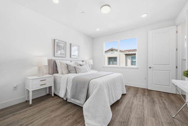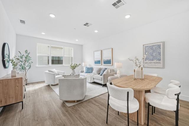 Welcome to this beautiful 2020-built townhome featuring 2 suites and a half bath in Sunnyvales convenient Elev8tion community. The main level offers an open floor plan with a spacious living room flowing seamlessly into the dining area and a connected gourmet kitchen. The modern kitchen includes an island, quartz countertops, a stylish backsplash, stainless steel appliances, and ample shaker-style cabinetry. A door leads to a private balcony-perfect for outdoor relaxation, along with a nearby half bath for added convenience. Both suites are located on the third floor. The primary suite features a spacious bedroom and an en-suite bath with double vanity sinks and a stall shower. The second suite includes a bathroom with a shower over tub. Additional highlights include in-unit laundry and an attached tandem two-car garage. Ideally located near downtown Sunnyvale with easy access to restaurants, shops, Highways 101 & 237, Central Expressway, and Caltrain. Close to Google, Amazon, and Microsoft, with a short commute to other major tech companies. Do not miss this great opportunity!