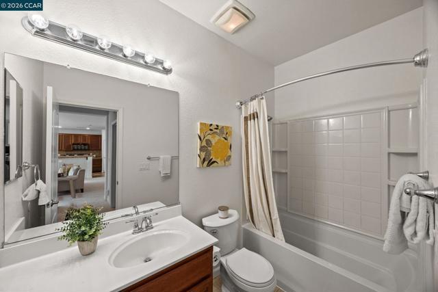 | 1st Floor Bedroom | Brighton Station | Commuter-Friendly Welcome to Brighton Station—one of Brentwood’s most convenient and sought-after neighborhoods. This move-in-ready two-story home offers approximately 2,556 sq ft of thoughtfully designed living space, highlighted by a rare full bedroom and bathroom on the main level—ideal for guests, multigenerational living, or a private home office. The open-concept floor plan creates an effortless flow between the kitchen, living, and family rooms, making the home perfect for both everyday living and entertaining. The kitchen features tile countertops, stainless steel gas range, dishwasher, refrigerator, abundant natural light, and a blend of tile and carpet flooring throughout. Step outside to a fully fenced backyard with low-maintenance landscaping—an ideal setting for relaxing, gardening, or outdoor gatherings. Additional features include central HVAC, gas fireplace, laundry hookups, and a two-car garage. Enjoy a prime location directly across from Appaloosa Park and just minutes from shopping, dining, schools, and major medical centers. This commuter-friendly location offers easy access to Hwy 4, Vasco Road, and BART connections, providing convenient travel to Walnut Creek, Pleasant Hill & Concord.