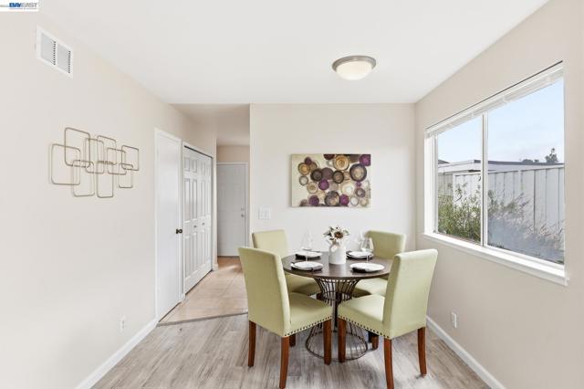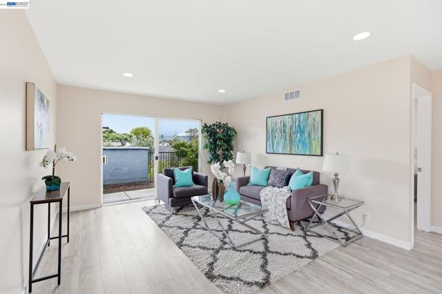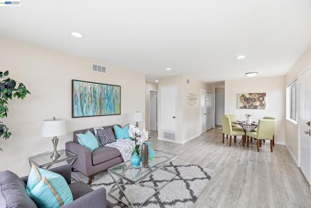 Rarely available! One-story end unit with a 2-car garage in a very desirable location, Corner unit with windows on 3 sides makes it Bright & Comfortable , Nicely updated for immediate move in! , Updated Kitchen , New electric stove/hood, New refrigerator, New laminate floors , Fresh interior paint , recessed lighting , Spacious updated bathroom, Peaceful/private patio between home and garage for relaxation. 2nd patio off living room , Front door opens to greenbelt , Close to Union Landing for shopping , restaurants/Century 25 theatre , Easy access to schools/parks/sports center/ BART/I-880/Dumbarton & San Mateo bridges.