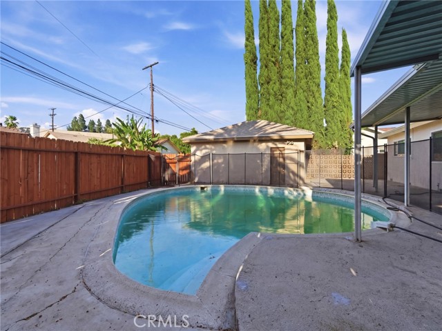 16455 Ludlow St, Granada Hills, CA 91344 4 Bed | 2 Bath | 1,631 SqFt | 7,105 SqFt Lot | Detached Garage Freshly painted single-story pool home on a spacious lot in Granada Hills. This 4-bedroom, 2-bathroom home features new interior and exterior paint throughout, offering 1,631 square feet of living space with a functional layout and a private backyard retreat. Enter through the double front doors into a tiled foyer that opens to a generous living room with hardwood laminate flooring, recessed lighting, a natural stone fireplace, and French doors leading out to the pool and patio. The kitchen is well-appointed with cherry-tone shaker cabinetry, granite countertops, tile backsplash, stainless steel appliances including a gas range, built-in microwave, dishwasher, and side-by-side refrigerator, plus a large peninsula with additional storage. An adjacent breakfast nook with tile flooring and large windows provides a bright space for casual dining. A dedicated laundry room with washer/dryer hookups is conveniently located off the kitchen. The hallway features built-in linen storage and leads to four bedrooms, each with ceiling fans, carpet, and closet space. The hall bathroom includes a granite-topped vanity with cherry cabinetry and a tile-surround tub/shower combo. The primary suite has an en-suite bathroom with a granite vanity and walk-in shower. The backyard is the highlight — a private in-ground pool with safety fencing, a covered patio, mature Italian cypress and palm trees, and a fully fenced yard. The detached two-car garage is accessible via the rear alley with a large concrete pad, offering ample parking, storage, and potential workshop space. From the 405 Freeway, exit at Rinaldi Street and head west, then turn left onto Balboa Boulevard and right onto Ludlow Street. From the 118 Freeway, exit at Balboa Boulevard and head south, then turn left onto Ludlow Street. Conveniently located near top-rated Granada Hills schools, local shopping and dining, parks, and with quick freeway access to the 118 and 405. Schedule your showing today!