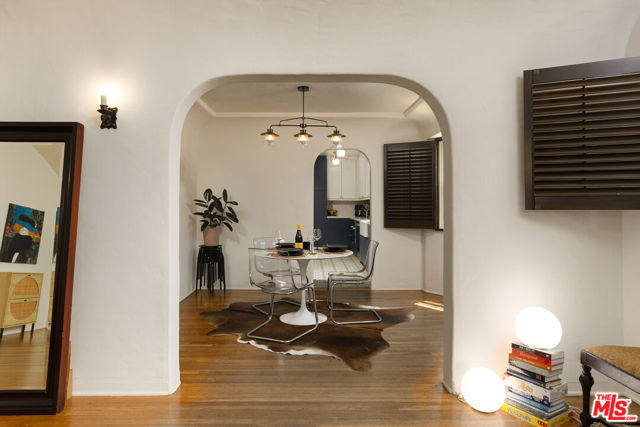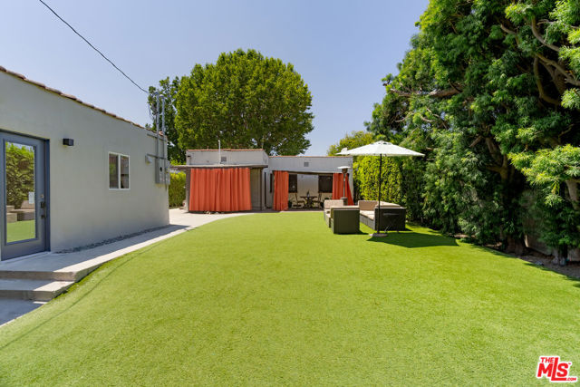 Built in 1929, at the height of Hollywood's Golden Age, this Spanish Hacienda was commissioned for the early Studioland era, a time when homes were designed with intention, proportion, and lasting character. Set on a rare double-sized 8,001 square foot lot along a quiet, tree-lined street in Toluca Woods, the property stands apart from the more common bungalows of the time, offering architectural scale and presence that has become increasingly hard to find. A formal vestibule entry sets the tone, leading into a living room defined by soaring coved barrel ceilings, arched passageways, and original hardwood floors. A large picture window brings in natural light, while a crisp white plaster fireplace, paired with period-inspired brass fixtures, anchors the space. A dedicated dining room transitions into the kitchen, which has been updated with custom cabinetry, tile flooring, a designer backsplash, and chef-grade appliances. The layout remains practical and well-connected, supporting both everyday use and entertaining. Three well-proportioned bedrooms are positioned along the north side of the home, each with generous closet space and consistent natural light. The front bedroom includes a newly built en suite bath with a clean, modern finish. The main bathroom leans into classic Spanish influence, featuring terra cotta tile, a custom vanity, a deep soaking tub, and wrought-iron fixtures. The backyard opens to a wide, usable setting with a large green area and a covered dining space designed for outdoor living. There is ample room to introduce a pool, expand the deck, or further shape the grounds over time. At the rear of the property, a newly constructed detached ADU, fully permitted in 2026, adds a modern layer to the home's historic foundation. Complete with its own kitchen and bath, it offers immediate flexibility for rental income, a private office, guest quarters, or extended living. Beyond the ADU, a separate bonus structure provides additional space for a studio, gym, workshop, or storage. Alley access introduces further potential, allowing for additional expansion or future use options. Located within walking distance to Toluca Lake Elementary School and just minutes from Ventura Boulevard and the NoHo Arts District. Nearby favorites include Groundwork Coffee Co., Whole Foods Market and Epicurus Gourmet, along with local staples like The Idle Hour and The Front Yard at The Garland Hotel.