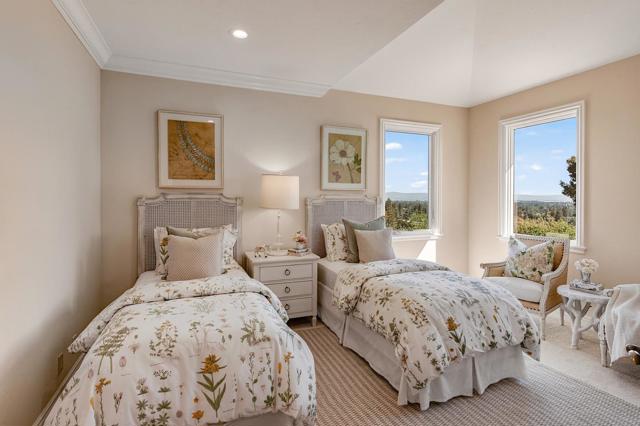 Set on a beautifully terraced 25,700 sq ft lot, this exceptional Mediterranean-inspired estate custom built by Wayne Boatman offers a rare pairing of panoramic views and an incredibly convenient, close-in location just over a mile from downtown. A thoughtfully designed floor plan orients all main living spaces toward sweeping vistas of the Bay and surrounding hills, views typically reserved for homes much deeper in Los Altos Hills. Expansive windows and doors create a seamless connection to the outdoors, while high ceilings, abundant natural light, and the extensive use of natural stone, including travertine, create a warm yet refined environment. The chefs kitchen features leathered Taj Mahal quartzite, premium appliances, and custom cabinetry, and opens to inviting formal and informal gathering spaces. A main-level office and guest suite provide flexibility, while four upper-level bedroom suites include a luxurious primary retreat with a private view balcony. Outdoor living unfolds across multiple levels, with expansive view decks, patios, and level lawn areas surrounded by mature landscapingideal for both entertaining and everyday living. An extraordinary offering that combines privacy, 4,749 sq ft of living space, and one of the most compelling views in all of Los Altos.