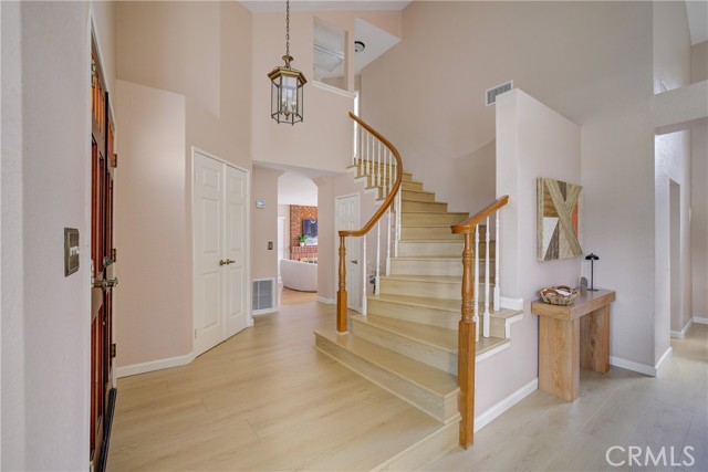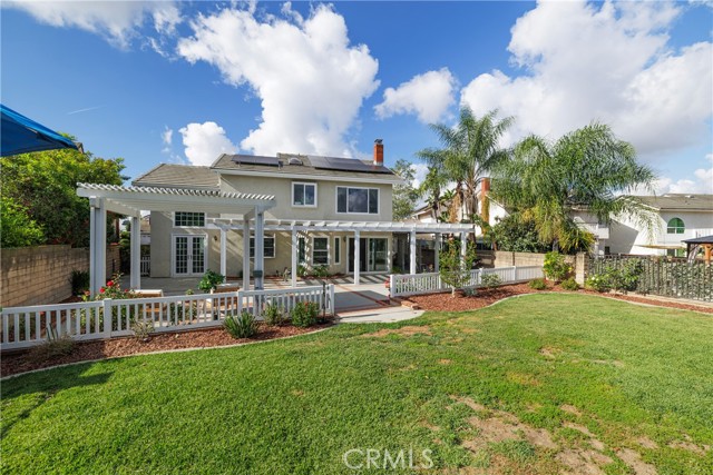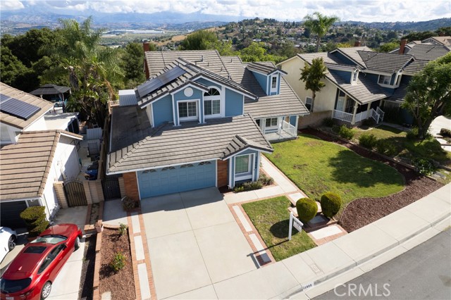 **VIEW HOME** Wonderful 5-bedroom, 3-bath home located on a quiet cul-de-sac in the highly desirable Walnut Valley Unified School District. Conveniently situated near Ronald Reagan Park with easy access to the California State Route 57 and California State Route 60. Double-door entry opens to a bright foyer with formal living and dining rooms featuring vaulted ceilings and large windows. Family room with fireplace opens to kitchen and dining area. Remodeled kitchen includes updated countertops, a Blanco sink, soft-close cabinetry, a GE Café gas range/oven and microwave, and a newer Whirlpool dishwasher. Large garden window overlooks the backyard. The main floor includes one bedroom, one full bath, and an indoor laundry room. Upstairs features a primary suite with views of the San Gabriel Mountains, plus three additional bedrooms and two bathrooms. The primary bathroom has been remodeled with a walk-in shower and linen storage. Upgrades include Solar panels (Sunrun), PEX repiping, newer windows, updated flooring, a newer HVAC system, a soft water system, and a reverse osmosis. Spacious backyard with covered patio, gazebo, planters, and mountain views—ideal for entertaining. 2-car attached garage with potential for additional workspace or office conversion. Close to schools, shopping, and dining.