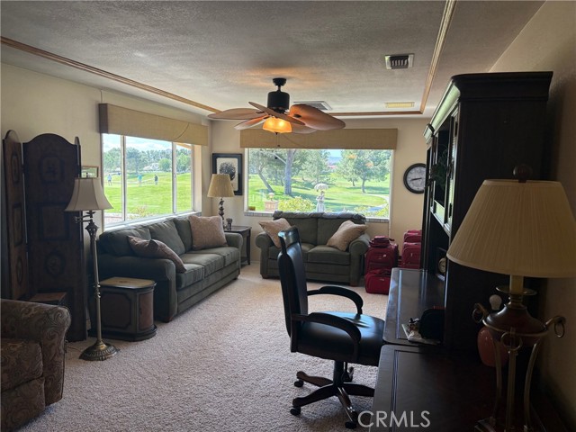 Custom home on the golf course. 2 bedroom, 2 bath home with upgrades galore! Don't miss your chance to live in the resort oasis of Silver Lakes. Gorgeous front courtyard enclosed for privacy. The living room features a cozy natural gas fireplace with large windows looking out onto the golf course. A bonus area is included off the living room with more gorgeouse views. The large well appointed kitchen makes meal prep a breeze, plenty of storage and counter space. Kitchen opens to expansive living room and dining area. Two car garage temperature controlled with work areas and attic storage, also includes a golf cart garage. Attic storage with lights and catwalk. Enjoy the large low maintenance back yard and patio which is great for entertaining, or simply relaxing as you watch the golfers make their way down the fairway. You will love the golf in SLA, which is included in your low montly home owner dues. Lovely clubhouse with fine dining and a bar area. Beautiful resort style pool with spas. There are tennis and pickleball courts, a pro-shop, as well as a ballroom, gymnasium, ballroom, library, also included are horse stables, RV storage and two shimmering lakes stocked for fishing or just relaxing on you boat. Come enjoy resort desert living at it's finest!