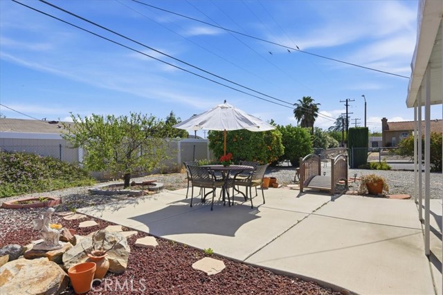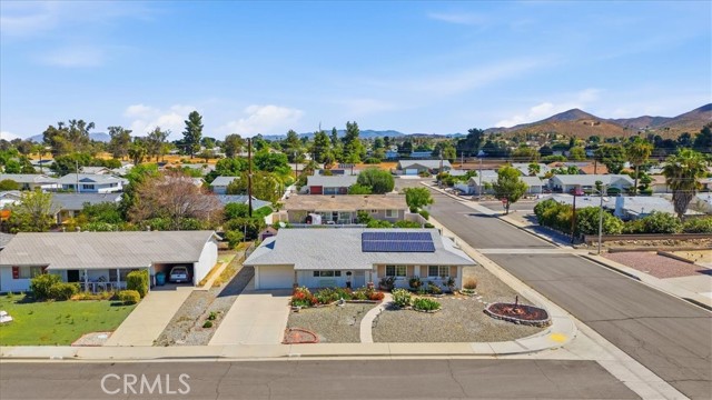 Welcome to easy retirement and low maintenance living in the heart of Menifee's desirable 55+ Sun City Community! This charming 3 bedroom 2 bath home boasts approximately 1308 square feet, while adding additional square footage from the converted lanai/sunroom currently used as a dining room. The thoughtfully designed living spaces make this home perfect for those looking to right-size without sacrificing comfort. Light filled rooms for everyday living offer 3 useful bedrooms or optional office space, a cozy reading nook, craft room or simply your guests. The primary bedroom features a built in vanity - truly a blast from the past, and 2 closets with an attached bathroom with walk-in shower. Plenty of storage throughout this home include - multiple closets, hall cabinets, walk-in pantry, outside shed and dedicated storage/garden room are just some of the practical features. Outdoors, you'll appreciate the low maintenance landscaping with several fruit trees, beautiful flowers and custom patio. This homeowner spared no expense when it came to home integrity with added Insulation, New Electrical Panel, Newer Vinyl Windows, Newer HVAC, Custom Driveway and Concrete work with potential RV parking. Additionally, this home is equipped with 12 Solar Panels to produce affordable energy. As part of the Sun City Civic Association which offers a small town setting with an abundance of indoor and outdoor activities, (2) pools, sports like Volleyball, Tennis and Tai Chi to name a few, top it off with over 40 social clubs i.e. Bridge, Mah Jong, Book Club, Travel Club and so much MORE!