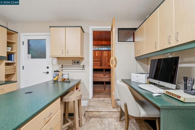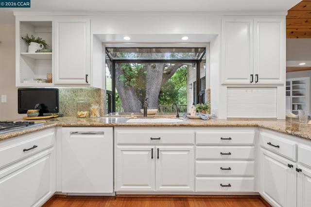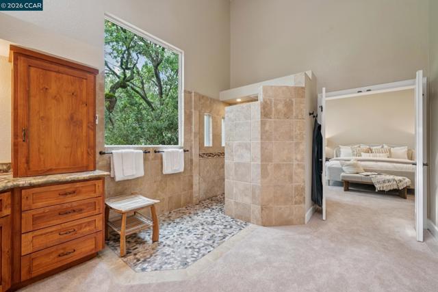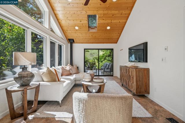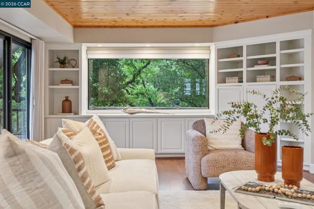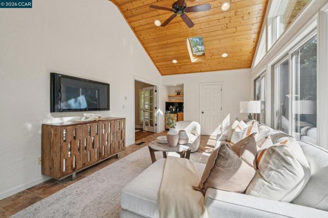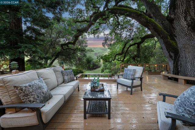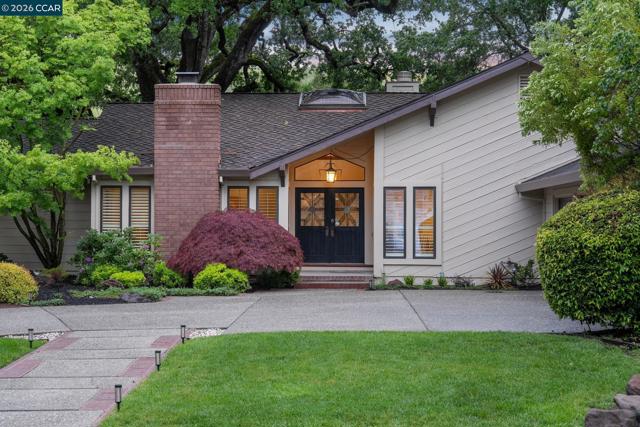 This stunning, sprawling single-story (w/ no steps!) home is nestled in the prestigious Hidden Oaks enclave of Blackhawk, surrounded by majestic oak & redwood trees that define California living at its finest. Featuring fresh exterior paint, new solar landscape lighting, newly painted cabinets new chandeliers and thoughtfully designed front yard landscaping, the home truly radiates warm curb appeal. Beautiful newer wood floors provide a sense of sophistication throughout the home. Grand layout has 3 bedrooms + office + bonus/flex room (optional 4th bedroom) w/ high ceilings & access to the spacious back deck. You will love the VIEWS , high-end sauna, new recessed lighting, built-in cabinetry, large laundry room, heated bathroom floors & spacious 3-car garage. Multiple living areas offer generous space for relaxation, connection, and shared experiences. The heart of the home opens to an expansive, refreshed deck that wraps around a magnificent 300+ year-old oak tree—an unforgettable backdrop for cooking, dining, and relaxing. The primary suite is a true retreat, featuring soaring ceilings that create a sense of space and serenity. Whether hosting guests or enjoying quiet moments, this home blends natural beauty w/ timeless design in one of Danville’s most sought-after communities.