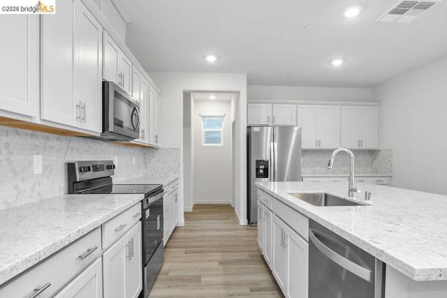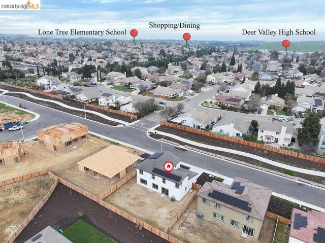 *Call agent today for a list of builder incentives!* Brand new 2026 construction by Meritage Homes in the desirable Deer Valley community! This 4 bedroom, 3 bath home offers 2,831 sq ft of thoughtfully designed living space on a 7,000 sq ft lot. Featuring a downstairs bedroom and full bath plus a private den at the entry, this layout is ideal for guests or multigenerational living. The open-concept great room showcases wide-plank flooring, recessed lighting, and a stunning chef’s kitchen with quartz countertops, shaker cabinetry, stainless steel appliances, expansive island, and walk-in pantry. Upstairs includes generous secondary bedrooms, and a luxurious primary suite with dual vanities, soaking tub, separate shower, and large walk-in closet. Fully fenced backyard offers endless potential. Leased solar for energy efficiency. HOA $202/month. The Deer Valley neighborhood has a highly desirable location close to local schools and offers easy access to BART, providing a smooth commute to San Francisco and throughout the greater Bay Area. Residents appreciate the nearby parks, walking trails, and recreational amenities that support an active and connected lifestyle.