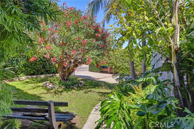 Tucked away in a lush, tropical setting, this charming 3-bedroom, 1-bath home offers a rare sense of privacy and tranquility ---perfect for first-time buyers or young families seeking a cozy retreat to call their own. Set back from the street and shielded by tall, mature hedges, the home feels like a hidden oasis on an oversized lot surrounded by vibrant greenery and swaying palms. Inside you'll find a thoughtfully remodeled interior that blends warmth and character with modern updates. Beautifully refinished original hardwood floors run throughout, while the inviting galley-style kitchen features classic oak cabinetry, granite countertops, and plenty of natural light. The bathroom has been tastefully upgraded with a claw-foot tub and shower, stylish tile, and a pedestal sink, creating a spa-like feel. Recent improvements -- including dual-pane windows with bamboo shades, upgraded plumbing and electrical, and a newer roof -- offer peace of mind and comfort. Step outside to a spacious covered patio, ideal for relaxing or entertaining, with tropical landscaping all around and a private Jacuzzi to complete the experience. This is more than just a home --- it's a peaceful, private escape with all the charm and functionality a growing household needs.