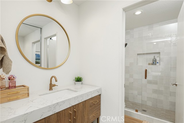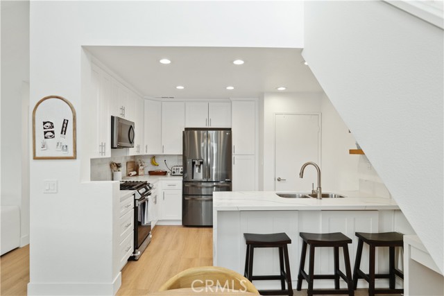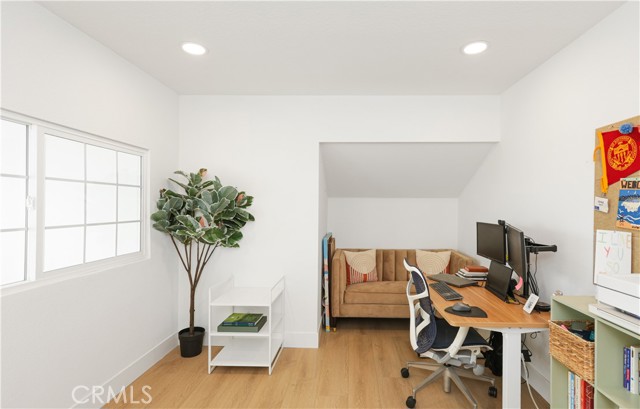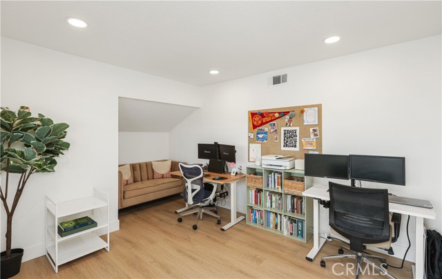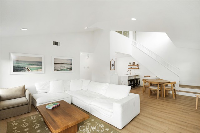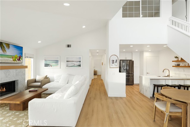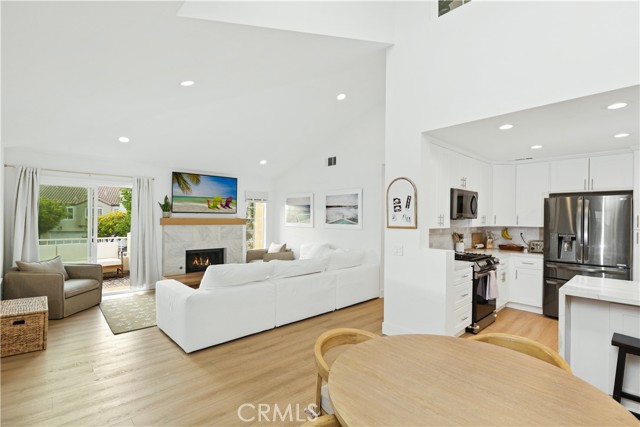 Light, bright, and thoughtfully updated, this beautifully remodeled residence offers an ideal blend of modern style and functional living in the heart of Aliso Viejo—highlighted by a highly desirable two-bedroom layout plus an enclosed loft that easily functions as a non-conforming third bedroom. The open-concept main level is filled with natural light and features soaring ceilings, wide-plank flooring, and a seamless flow between the living, dining, and kitchen spaces—perfect for both everyday living and entertaining. The crisp white kitchen is appointed with quartz countertops, stainless steel appliances, ample cabinetry, and a peninsula with bar seating that opens effortlessly to the main living area. The inviting living room centers around a cozy fireplace and opens to a private balcony—an ideal setting for morning coffee, evening sunsets, and year-round indoor-outdoor living. Upstairs, the fully enclosed loft creates exceptional flexibility, currently utilized as a home office but well-suited as a guest room, flex space, or non-conforming third bedroom, adding meaningful versatility to the home’s layout. The primary suite is spacious and serene, featuring generous closet space and a well-appointed bathroom. Additional highlights include recessed lighting, updated finishes throughout, and an attached garage. Ideally located near parks, trails, shopping, dining, and award-winning schools, 84 Cloudcrest delivers turnkey living with the added benefit of a flexible third-bedroom option in one of Aliso Viejo’s most sought-after communities. To round out this turn-key, model-like home, the seller has also recently installed a new A/C as of 2024 as well as a 240V plug in the garage for convenient EV charging.