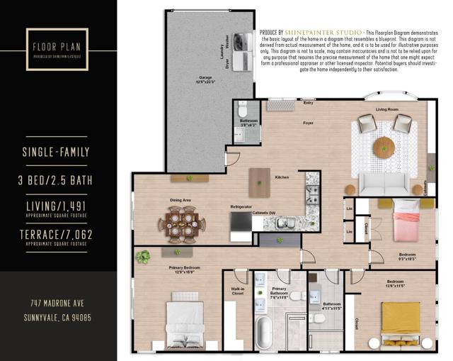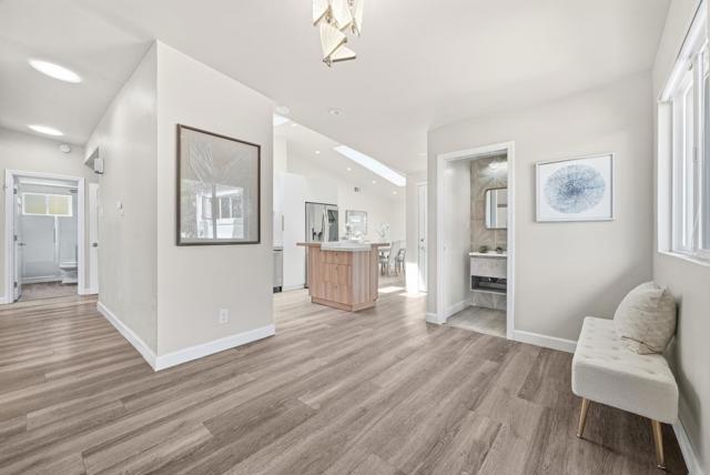 Welcome to this beautiful single-family home featuring 3 beds and 2.5 baths 1491 sqft on a big lot in a convenient Sunnyvale location. Upon entry, a spacious living room with bay windows sits to the left, while a half bath is near the foyer. To the right, the gourmet kitchen offers a central island with bar, stainless steel appliances, sleek cabinetry, skylights, and recessed lighting, flowing into a bright dining area with a large skylight and sliding door to the backyard-ideal for indoor-outdoor living. The hallway includes sun tunnels for natural light. The primary suite features built-in cabinetry, a walk-in closet, and a large bedroom with sliding door access to the private backyard, along with an en-suite bath with double vanity, large mirror, stall shower with skylight, and a tub. Two additional bedrooms provide space for family or guests, plus a hallway bath with a sun tunnel and stall shower. Additional highlights include an attached garage with washer and dryer, and a spacious backyard for outdoor activities. Located near downtown Sunnyvale with restaurants and shops, close to Google, Amazon, and Microsoft, with easy access to Hwy 101, 237, Central Expressway, and Caltrain for a short commute to major tech campuses. Do not miss this great opportunity!