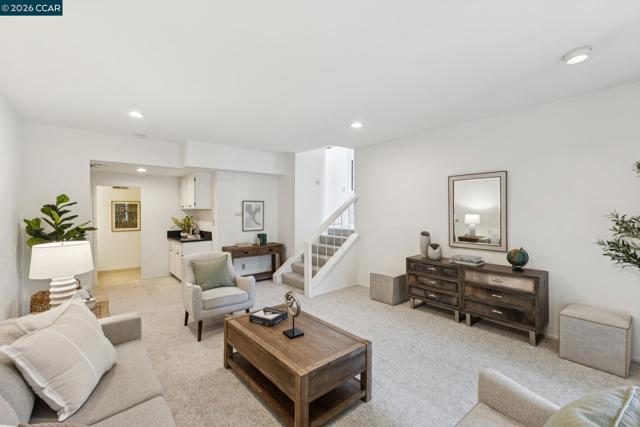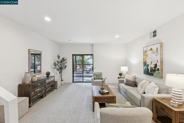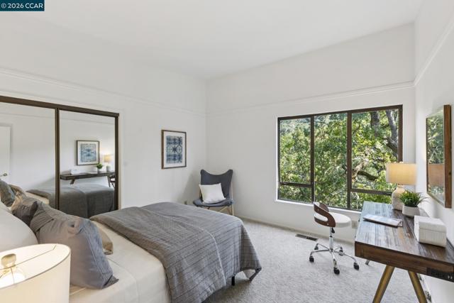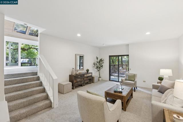 2462 sf, 4 BR, 2.5 BA located on .51 ac in North Orinda, built 1977. Nestled within nature and Oak trees, with privacy and unique gardens, offering multiple entertainment decks and a flat outdoor yard to enjoy. Light pours into the living spaces with huge Cathedral ceilings in the living room that extend up to the kitchen and dining room. A wood burning fireplace anchors the spacious living room that leads out to a sitting deck amongst the trees. Up a few steps there is a well-appointed open kitchen with new appliances and an island and plenty of cabinetry, that leads to an open dining room. Access from the kitchen leads to another magical deck with plenty of space for dining and entertaining among nature. Walk down a few steps and there is a large flat garden area that can be landscaped as you wish. A large Primary ensuite with views and an additional two, well sized bedrooms are down the hallway, complete with a laundry room. Downstairs is a potential large bedroom or bonus room with a half bath. Brand new quality carpet, refinished wood floors, freshly painted inside and out, original owner, this is the first time on the market and a true find Literally minutes to the freeway, downtown Orinda, with a bus stop at the end of the driveway. Miramonte HS.