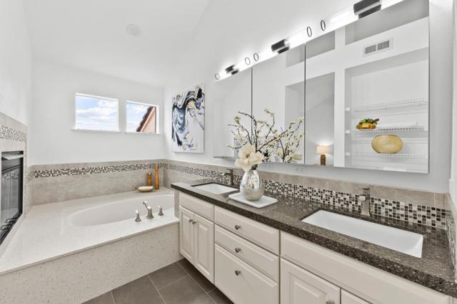 Luxurious penthouse condo in Corte Bella, Westside San Mateo. This expansive 1,507 sq ft, two-level townhome-style home offers 2 bedrooms, 2.5 bathrooms and a versatile BONUS ROOM ideal as a 3RD BEDROOM, office or formal dining room. Updated with luxury vinyl plank flooring, new carpeting, recessed lighting, and modern fixtures throughout. Living room features a vaulted ceiling, fireplace, and private balcony overlooking the landscaped courtyard. Bonus room off the main living area with double doors. Kitchen includes newer stainless steel appliances and under-cabinet LED lighting. Upstairs bedrooms offer private ensuite baths. Primary suite includes vaulted ceiling, walk-in closet, private balcony, and double-sided fireplace. Primary bath features dual-sink quartz vanity, mirrored cabinet, sunken tub, and separate shower. Secondary bedroom includes vaulted ceiling, walk-in closet, and private bath. Laundry area with side-by-side washer/dryer. Includes new central A/C and heating, two secured parking spaces, and extra storage. Gated community with pool, spa, fitness center, and clubhouse. Close to 25th Ave, downtown San Mateo, Hillsdale Shopping Center, CalTrain, public transportation and Hwy 92/101/280.