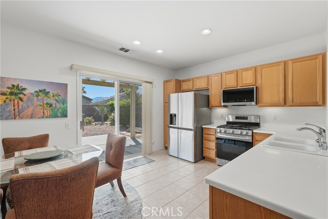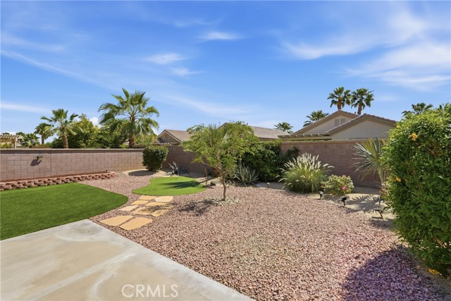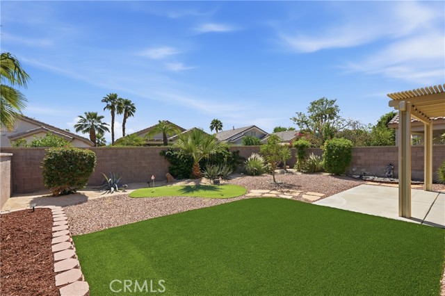 Welcome to Sun City Palm Desert—one of the most sought-after active adult communities in the Valley. This home offers comfort, style, and an easy desert lifestyle.The home features 2 bedrooms, 2 bathrooms, and a 2-car attached garage, along with plantation shutters throughout. The kitchen and living areas offer a comfortable and functional layout, ideal for both everyday living and entertaining. Step outside to your private backyard, complete with your very own putting green—perfect for relaxing or practicing your short game. The home is well maintained and has been lovingly cared for. The primary suite overlooks the backyard and includes a walk-in shower and generous walk-in closet. The guest bedroom is equipped with a convenient Murphy bed and sits adjacent to a full second bathroom. The garage houses the laundry area (included) and a newer water heater. Beyond the home, the community truly shines. Sun City Palm Desert is all about lifestyle—offering a wide array of clubs, social activities, and resort-style amenities with low HOA dues. Residents enjoy two championship 18-hole golf courses, practice facilities, pickleball, tennis, softball, bocce ball, and even an 18-hole putting course. Additional highlights include an honor library, arts and crafts studios, a grand ballroom for events, and four saltwater pools with hot tubs maintained at a comfortable 87 degrees.Dining and socializing are just steps away with two on-site restaurants, a martini and coffee bar, a post office, and a newly renovated indoor/outdoor bar featuring fire tables—perfect for taking in the stunning desert views and beautiful weather.This is an exceptional opportunity to enjoy resort-style living at an incredible value.
