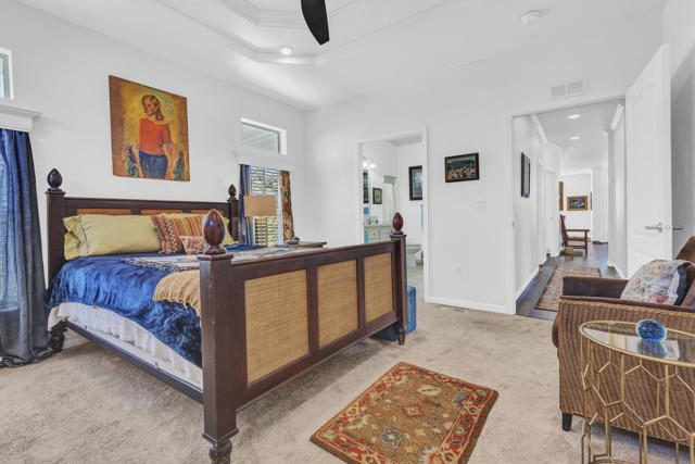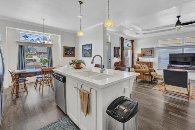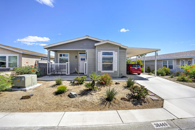 Welcome to this well-maintained, original-owner home in the highly sought-after 55+ community of Palm Desert Greens--where resort-style living meets everyday comfort. Built in 2017 and situated on fee land (you own the land), this thoughtfully designed residence offers 1,508 square feet with 3 bedrooms and 2 bathrooms. Step inside to an open-concept great room filled with natural light, enhanced by elevated ceilings and a seamless flow between living, dining, and kitchen spaces--perfect for both relaxed living and entertaining. The kitchen is tastefully appointed with quartz countertops, a center island, soft-close cabinetry, pull-outs for added functionality, and Whirlpool appliances, creating a space that is both stylish and highly functional. The spacious primary suite provides a peaceful retreat, while two additional bedrooms offer flexibility for guests, a home office, or hobby space. Every detail reflects pride of ownership and thoughtful care throughout. This home is set on a 433A permanent foundation, making it eligible for FHA, VA, conventional financing, and reverse mortgages--adding both value and accessibility. Enjoy the benefits of a low HOA of just $400/month, which includes trash, recycling, compost, cable TV, internet, and access to the community's 18-hole executive golf course. Residents of Palm Desert Greens also enjoy an impressive array of amenities, including free golf for residents, tennis, pickleball, bocce ball, three pools, and a vibrant social scene with countless clubs and activities. This is a rare opportunity to own a newer home in one of Palm Desert's most desirable active adult communities--offering the perfect blend of comfort, convenience, and lifestyle.