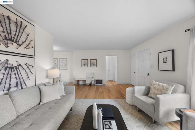 This beloved family home is available for the first time in 70 years. It’s no wonder the owners held onto this gem, w/ its unbeatable location for convenience and walkability. A short stroll brings you to Jefferson Elementary, the post office, favorite restaurants, and essential shopping. Toyon Park - a neighborhood treasure for kids, dogs, and gatherings - is a stone’s throw away, giving you everyday access to open green spaces, a playground, picnic tables, and bocce ball. Plus, this home is a dream for your commute, w/ a bus stop to BART and Oakland just steps away, and a quick hop to 580 and 880. Set on a generous 7,000 sf corner lot, your new home greets you w/ colorful roses in the front yard. Inside, your cozy sanctuary spans 1,569 sf, w/ 3 bedrooms, 1 bathroom, a spacious eat-in kitchen, and a large family room that features a wet bar and space for a work-from-home office. This home is ready to impress from day 1, thanks to its freshly painted interior, refinished hardwood floors, and new laminate floors in the kitchen and 3rd bedroom. Imagine opening a sliding glass door to your big backyard w/ a mature apple tree and ample space for playing and gardening. Important updates like earthquake bracing and dual-pane windows will also give you peace of mind. This is the one!