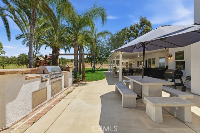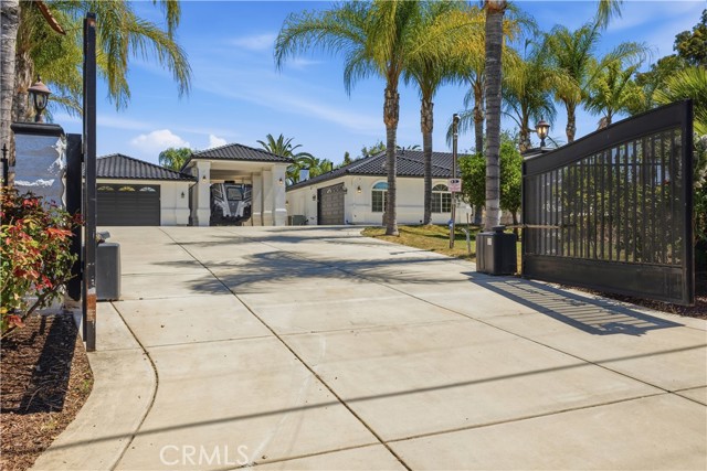 Modern Mediterranean home on approximately 5.1 acres in Arlington Heights. Located on a quiet street with three separate entrances, this property offers both residential and agricultural use, creating an ideal ranch-style living environment. It includes 10 shares of the Gage Canal, established orange groves, and a barn stable. Inside, the home features vaulted ceilings, an open floor plan, high-end finishes, Viking kitchen appliances, custom bathroom designs, and wide-plank oak flooring throughout the 4 bedrooms. Additional highlights include 3 beautifully tiled bathrooms, a dedicated laundry room, a huge carport, a massive canopy, and an additional garage with over 1,300 sq ft of storage plus a bonus room—both garages have epoxy-coated floors. The property is fully fenced with RV parking, an irrigation system, and a yard enhanced by beautiful palm trees. The upgraded backyard provides a unique outdoor retreat perfect for relaxing or entertaining. Located near the Historic California State Citrus Park.