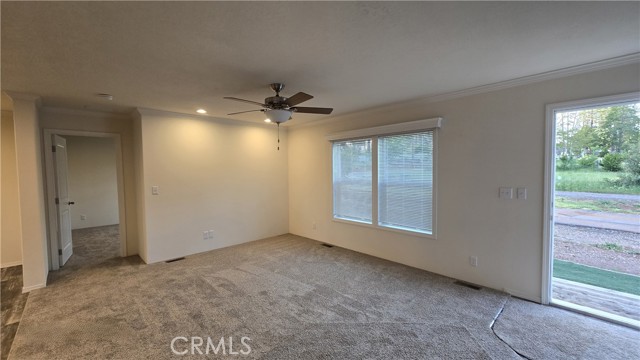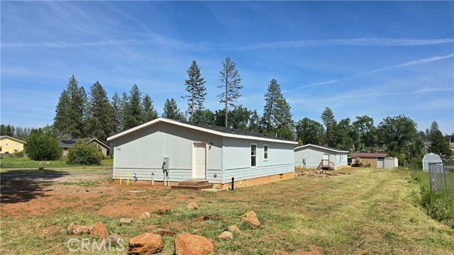 Welcome to this brand-new, never-lived-in manufactured home offering comfort, style, and a fantastic location! This thoughtfully designed 2-bedroom plus den, 2-bath home features a desirable split-bedroom floor plan, providing added privacy between the primary suite and guest spaces. Step inside to enjoy soaring 9-foot ceilings and an inviting open-concept layout that seamlessly connects the living room, dining area, and spacious kitchen—perfect for both everyday living and entertaining. The kitchen showcases beautiful natural wood cabinetry, abundant storage, and ample counter space to meet all your needs. The primary bedroom offers a private retreat with an ensuite bathroom featuring a walk-in shower. Secondary bedroom and versatile den provide flexible space for guests, a home office, or hobbies. Cozy carpet enhances the living room and bedrooms, while durable vinyl flooring flows through the kitchen, dining area, bathrooms, and laundry room. An indoor laundry room adds convenience and includes direct access to the backyard. Situated on a level .28-acre lot, the exterior provides plenty of space for gardening, recreation, or future improvements. A large existing concrete slab—formerly the foundation of a two-story garage and workshop—remains in good condition and offers endless potential for a new structure, workshop, or outdoor entertaining area. Ideally located just one mile from Paradise’s primary shopping center and approximately half a mile from access to the Town of Paradise Walking Trail, which spans the length of town and is perfect for walking or biking. Enjoy being just minutes from downtown shopping and dining, local parks, scenic rivers and creeks, and multiple lakes—including the north end of Lake Oroville at Lime Saddle Marina, offering excellent fishing and water recreation opportunities. This move-in-ready home combines modern comfort, outdoor space, and a prime location—don’t miss this opportunity!