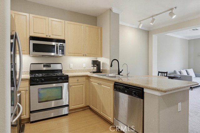 Top-floor opportunity in the highly sought-after Watermarke community in Irvine! Experience resort-style living ideally located near the airport, freeways, shopping, dining, and major business centers. This desirable 1-bedroom plus spacious den offers a versatile layout, perfect for a home office or flex space. The open floor plan provides seamless flow, with the kitchen opening to the dining and living areas, creating a bright and inviting living space. The bedroom features a walk-in closet, while the bathroom offers dual sinks for added comfort and functionality. You’ll also find in-unit laundry conveniently located in a closet. Enjoy a spacious private balcony with beautiful courtyard and pool views, perfect for relaxing or entertaining. Located within a gated community, this unit includes two parking spaces—a rare and valuable feature. HOA dues cover water and trash. Residents enjoy an array of resort-style amenities including a clubhouse, pools, spas, fitness centers, BBQ areas, tennis courts, and a basketball court.
