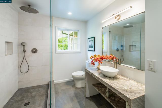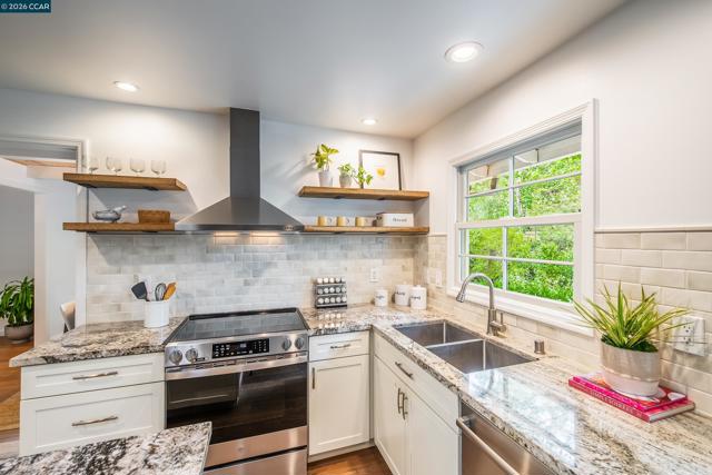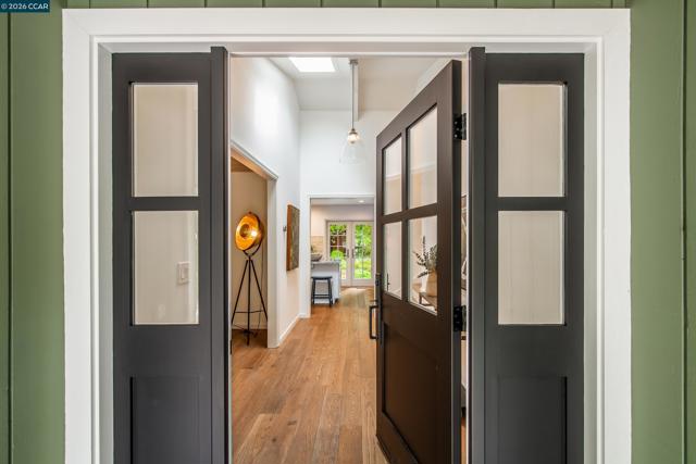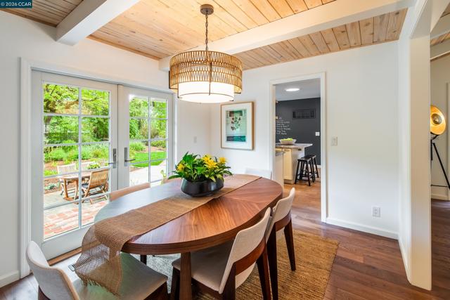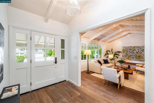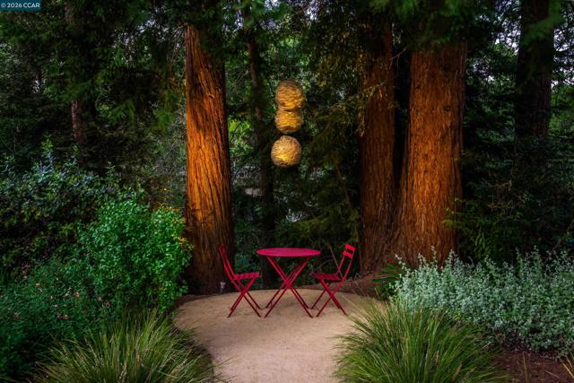 Open Sat & Sun 1-4! Tucked at the end of a quiet cul-de-sac in Lafayette’s sought-after Trails neighborhood, this beautifully updated home offers an exceptional blend of privacy, convenience, and a serene creekside setting. Ideally located near top-rated Lafayette schools, the Lafayette-Moraga Trail, vibrant downtown shops and dining, and BART (approximately 0.25 miles), the location supports both an active lifestyle and everyday ease. Inside, warm wood floors span the main level, setting the tone for a light-filled and inviting interior. A dramatic vaulted living room creates an airy sense of volume and flows seamlessly into the formal dining area, where French doors open to the gardens, perfect for effortless indoor-outdoor entertaining. The updated kitchen is both stylish and functional, featuring granite countertops, stainless steel appliances, abundant prep space, and floor-to-ceiling cabinetry that offers generous storage. Just beyond, the spacious family room with a cozy fireplace provides a comfortable gathering space for everyday living, movie nights, or hosting guests, with a conveniently located powder bath. Upstairs, the private bedroom wing is filled with natural light. The primary suite serves as a peaceful retreat, complete with a spacious closet and an updated en suite bath. Secondary bedrooms are well-sized and share a beautifully updated hall bathroom, offering comfort and versatility for family, guests, or a home office. The backyard offers a beautiful park-like setting, an inviting outdoor sanctuary designed for both relaxation and entertaining. Multiple seating areas, a lush lawn, and mature landscaping create a sense of tranquility, while towering redwood trees and a picturesque creekside backdrop provide natural beauty and privacy. Whether enjoying a quiet morning coffee, hosting gatherings, or simply unwinding at the end of the day, this outdoor space feels like a private retreat. With its ideal location, thoughtful updates, and enchanting setting, 860 Paradise Court presents a rare opportunity to enjoy the best of Lafayette living.