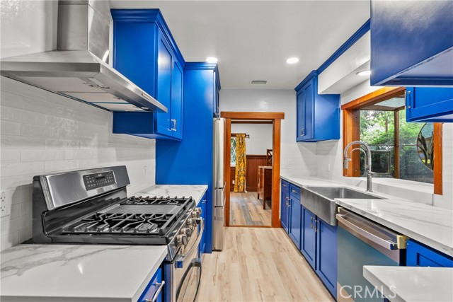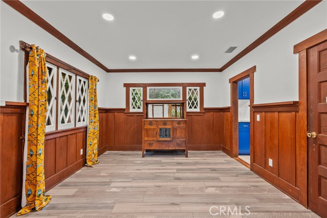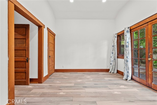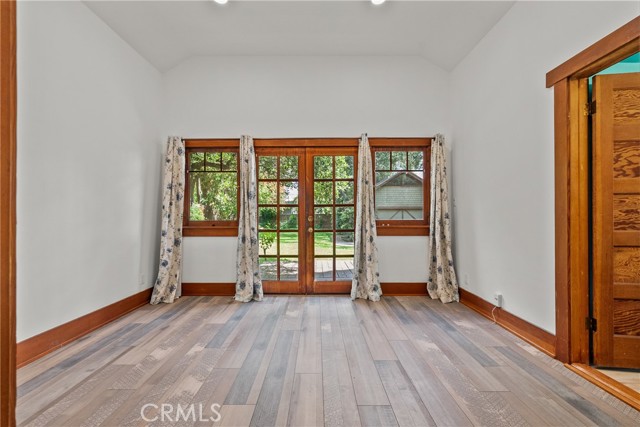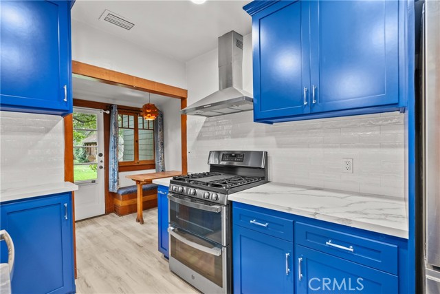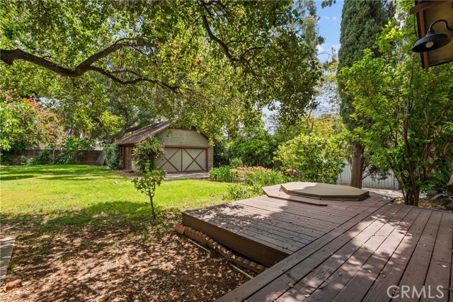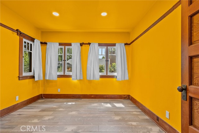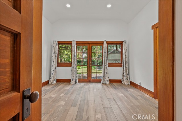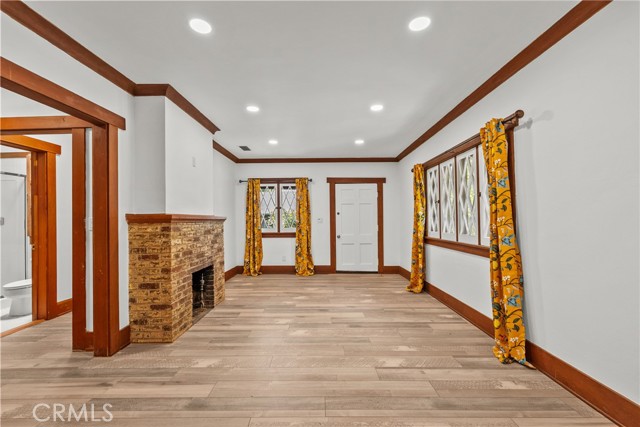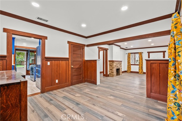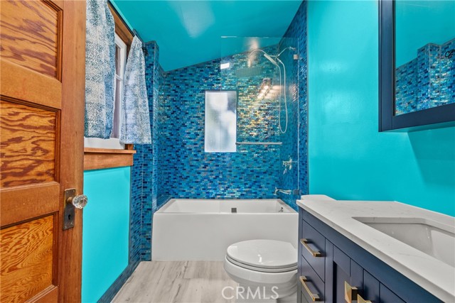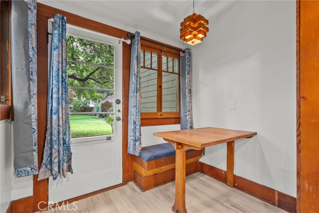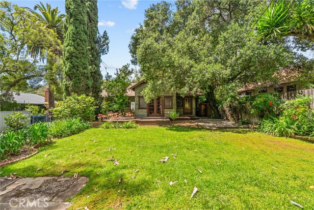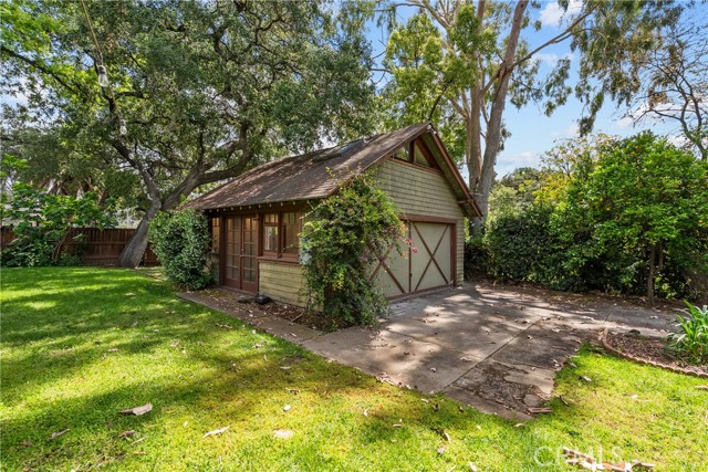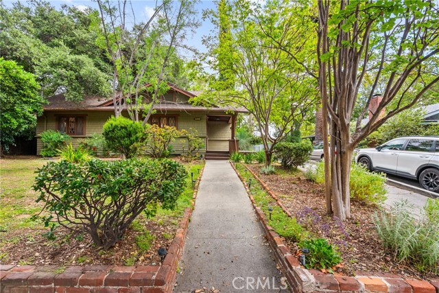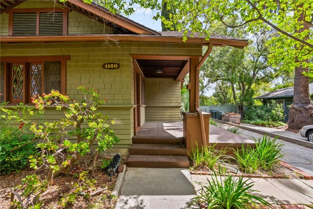Nestled in the highly sought-after Bungalow Heaven Landmark District, this beautifully restored 1912 Craftsman bungalow by Vernon O. Whitcomb blends timeless character with extensive modern upgrades. A contributing historic property, it offers two bedrooms, two bathrooms, with 1,132 sq feet plus a detached studio of 441 sq ft, totaling 1,573 square feet, all on a generous, flat 10,113 square foot lot. A welcoming front porch opens to a living room with a brick fireplace and classic bookcase partitions leading to the dining room, highlighted by original Douglas Fir wainscoting. Major system upgrades include a reinforced sister wall foundation, full rewiring with upgraded panels for the home and garage, new attic insulation, termite fumigation, and a leak detection system. Plumbing improvements include updated kitchen water lines, new copper piping, new angle stops, a new dryer vent, replaced corroded copper, and a tankless water heater. The interior blends charm and modern style with new vinyl plank flooring (original hardwood remains underneath), recessed lighting, and fresh paint throughout. The remodeled kitchen features custom cabinetry, quartz countertops, and new stainless appliances. The primary suite offers a shower/bath with custom tile, new vanity, and updated fixtures. The backyard is a private retreat with a deck, built-in spa, lawn, and mature fruit trees and oaks. The detached studio offers approximately 441 square feet with its own HVAC, skylights, and French doors, presenting excellent ADU potential. A rare opportunity to own a turnkey historic home in one of Pasadena’s most beloved neighborhoods, with potential Mills Act benefits.