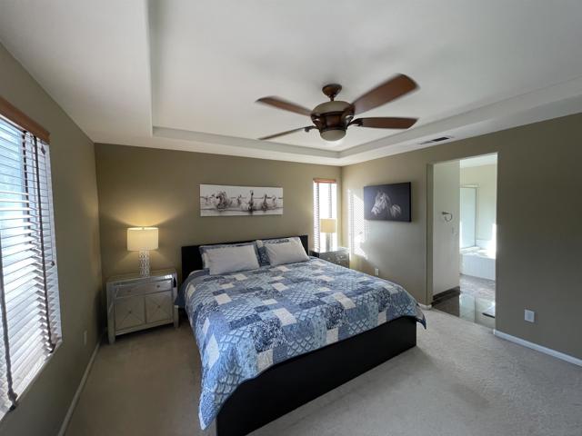 Nestled at the end of a peaceful cul-de-sac in the heart of Otay Ranch, this beautifully maintained home sits on a huge 14,972 sq ft lot, offering exceptional space, privacy, and outdoor potential. Featuring 4 bedrooms plus a versatile downstairs room ideal for a home office or optional 5th bedroom, and 2.5 bathrooms, this residence spans approximately 2,454 sq ft of thoughtfully designed living space. Step inside to a spacious open floor plan filled with natural light, highlighted by vaulted ceilings that create an airy, inviting atmosphere. The bright kitchen is equipped with modern appliances and opens seamlessly to a cozy family room—perfect for everyday living and entertaining. Upstairs, the generous primary suite serves as a relaxing retreat with a walk-in closet and an ensuite bathroom featuring dual vanities. Three additional bedrooms provide flexibility for family, guests, or workspace needs. Enjoy the convenience of a large garage with ample storage and a private backyard—made even more special by the expansive lot—ideal for relaxing, entertaining, or creating your dream outdoor space. The home also includes solar for added energy efficiency. Ideally located just minutes from top-rated schools, scenic parks, and shopping, this property offers both tranquility and accessibility—making it a perfect place to call home